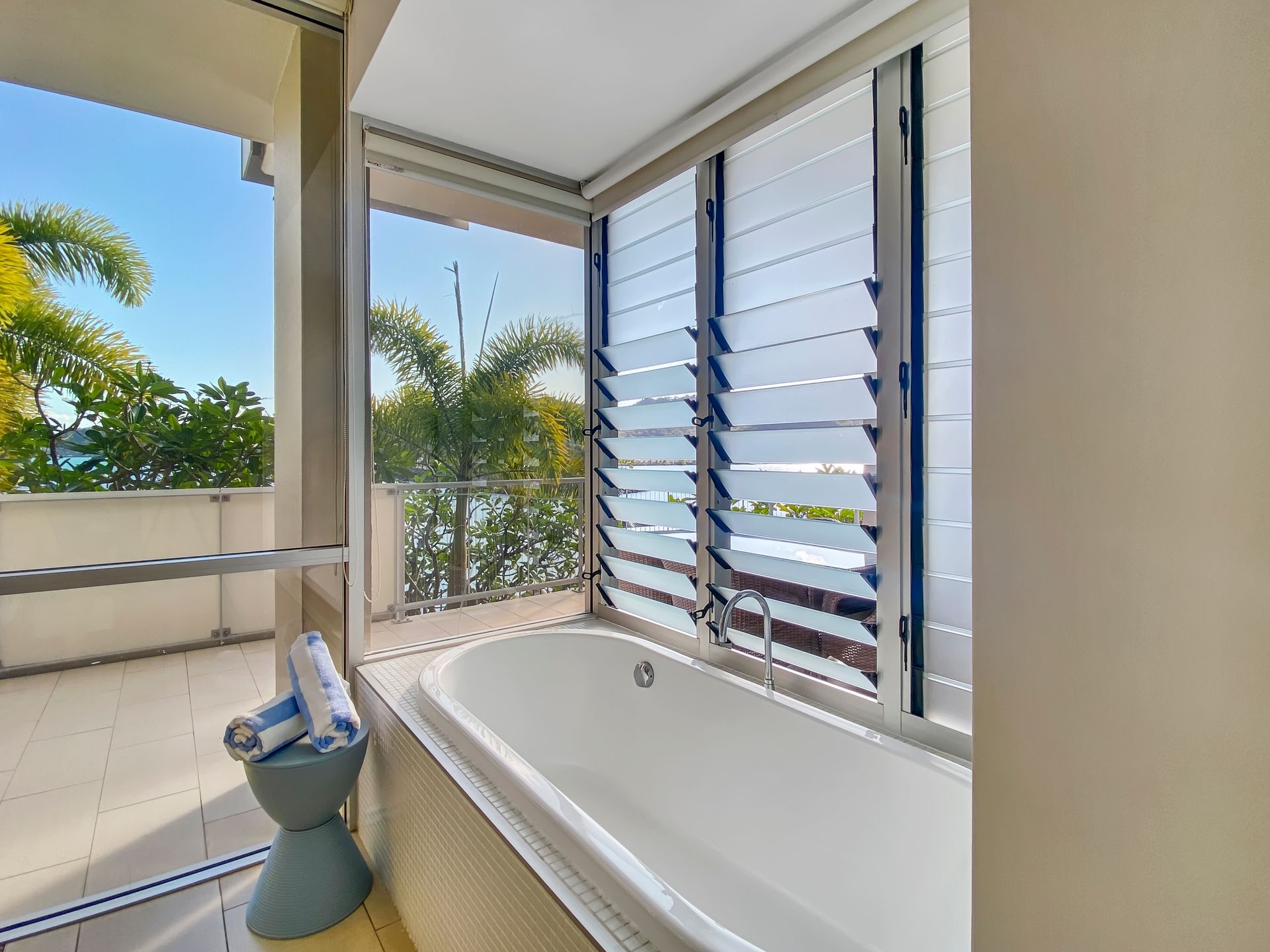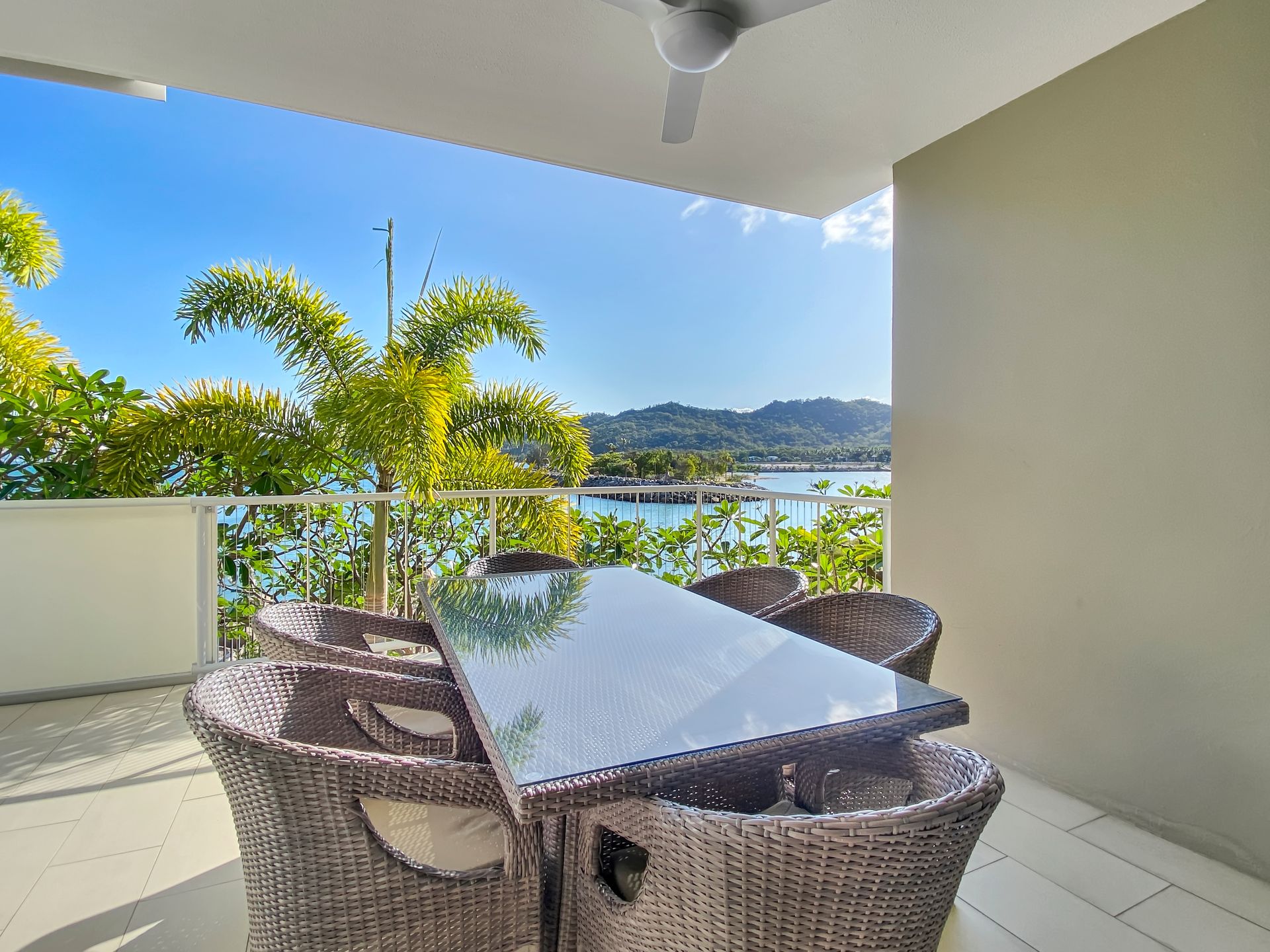 The spacious living areas are air-conditioned and equipped with ceiling fans, ensuring a comfortable environment regardless of the weather outside. When you do venture out you will find a covered balcony area with outdoor furniture allows guests to enjoy stunning water views. The complex shares 4 communal swimming pools providing ample entertainment opportunities for everyone in the squad.