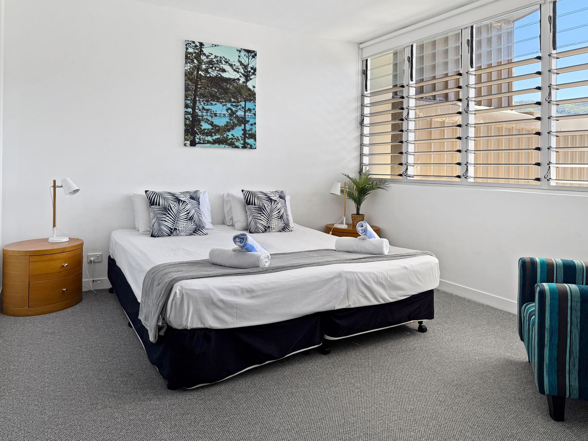 Meeah94 - 30th NovemberThis apartment truly was fantastic. Was a hot day ac was already on for my arrival which I was so greatful for. The view is the best I have seen in a long time, pools and facilities are amazing. Interior design and beautiful photos of the island on the walls. Bedding and decor colours are perfect, modern & relaxing. Bath perfectly positioned. You can hear the waves lapping on the rocks all day and night so peaceful.Four pools in the resort. The one below a never ending with rock wallabies joining in the afternoon. Kitchen well equipped, TV excellent with Netflix ready to go. 2 bathrooms, and plenty of storage space. Car parking aswell & an elevator Almost directly to the room. I highly recommend I wish could have stayed longer & next time I definitely will. We hired a car as with my luggage it's necessary lol. However it is so close to the ferry & iga you could walk no problem.We had a fantastic stay very romantic atmosphere also. Highly recommend