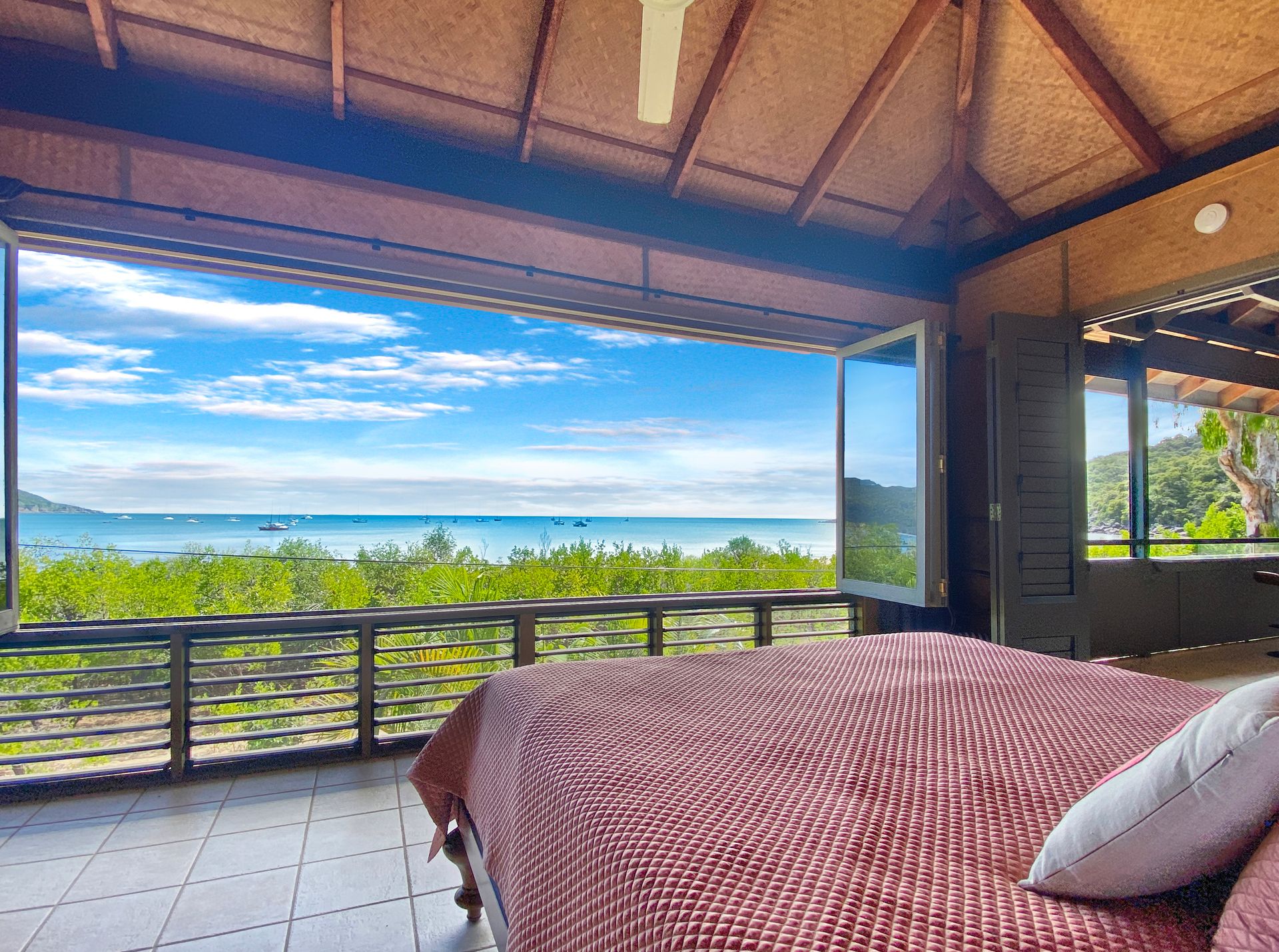 The master ensuite bedroom features a king bed and a stunning view of the Coral Sea, where you can watch the boats sailing by. A true piece of paradise!