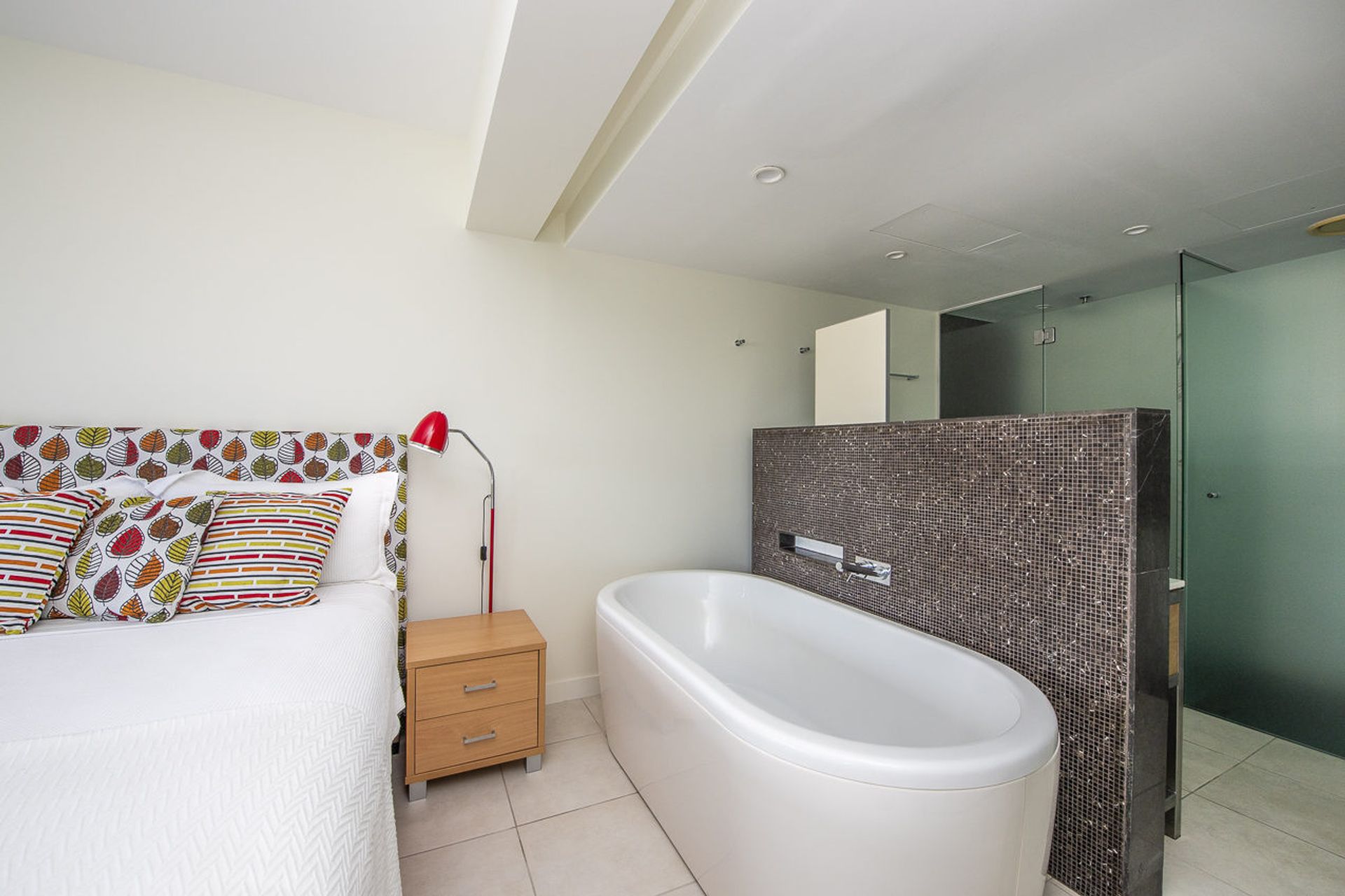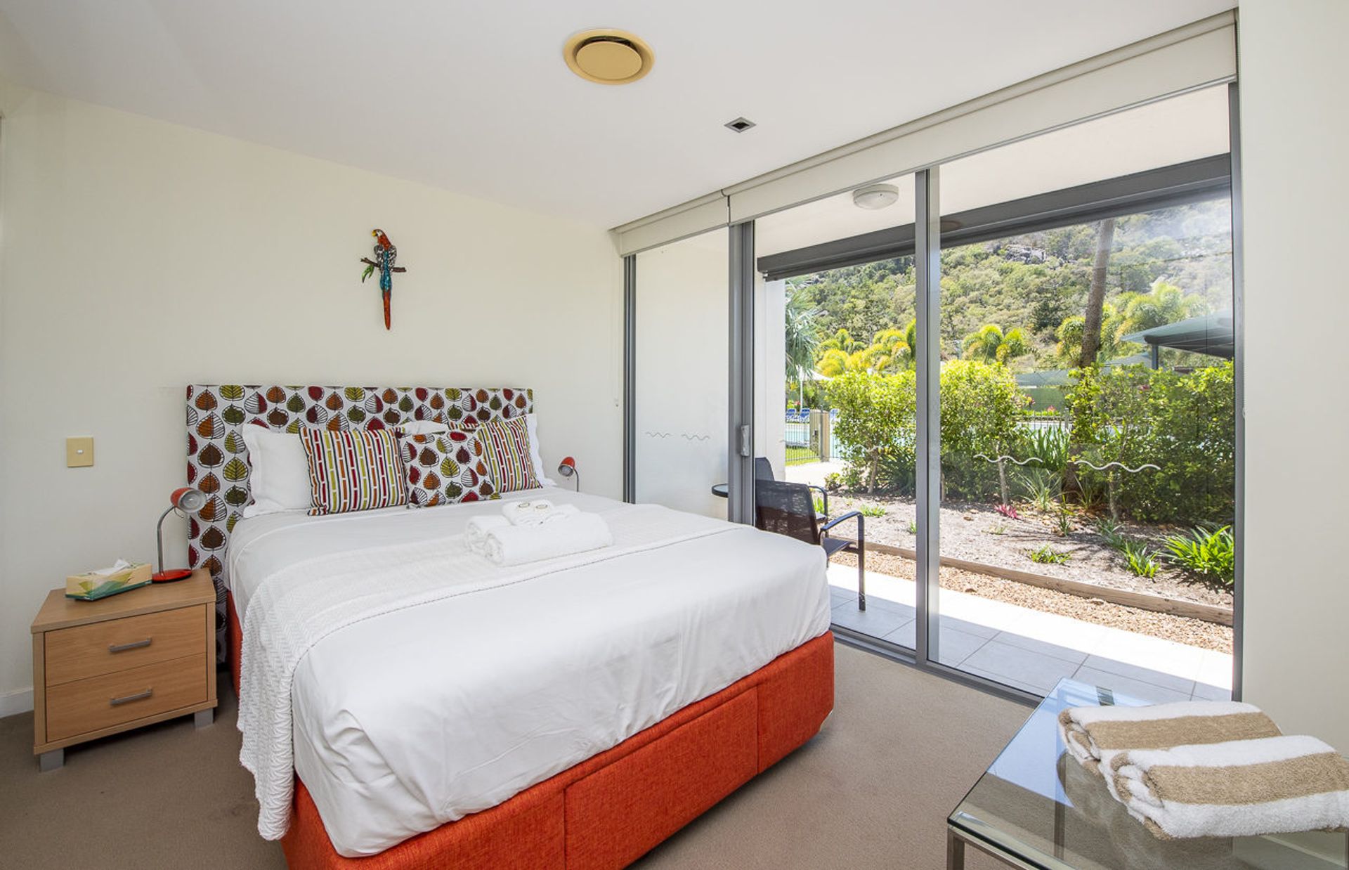 The master bedroom overlooks your private courtyard and plunge pool, as well as views of the marina that can all be enjoyed from the comfort of your Queen bed. The master bedroom is complete with an ensuite bathroom and large bath. The second bedroom also has a Queen sized bed and overlooks the gardens.