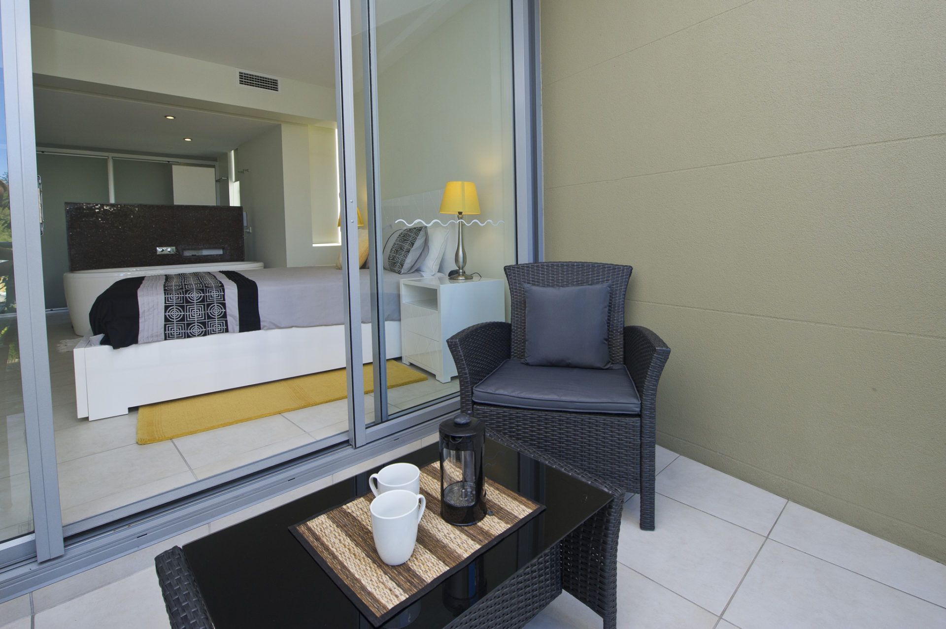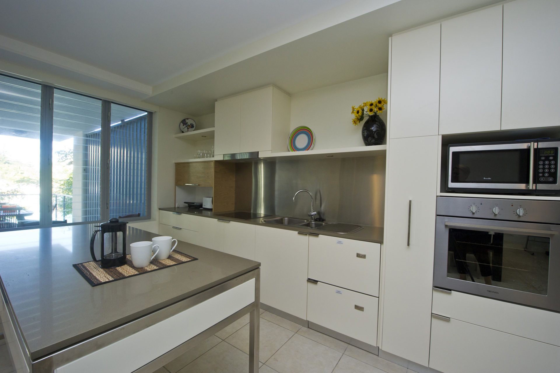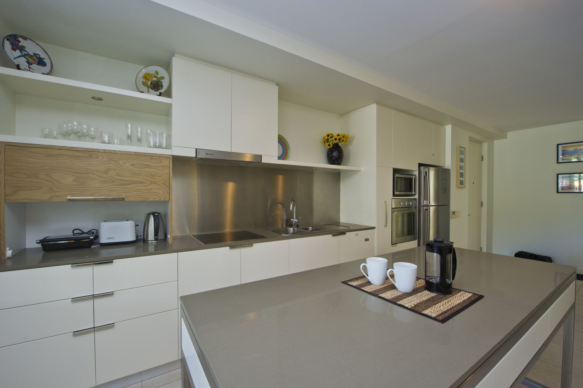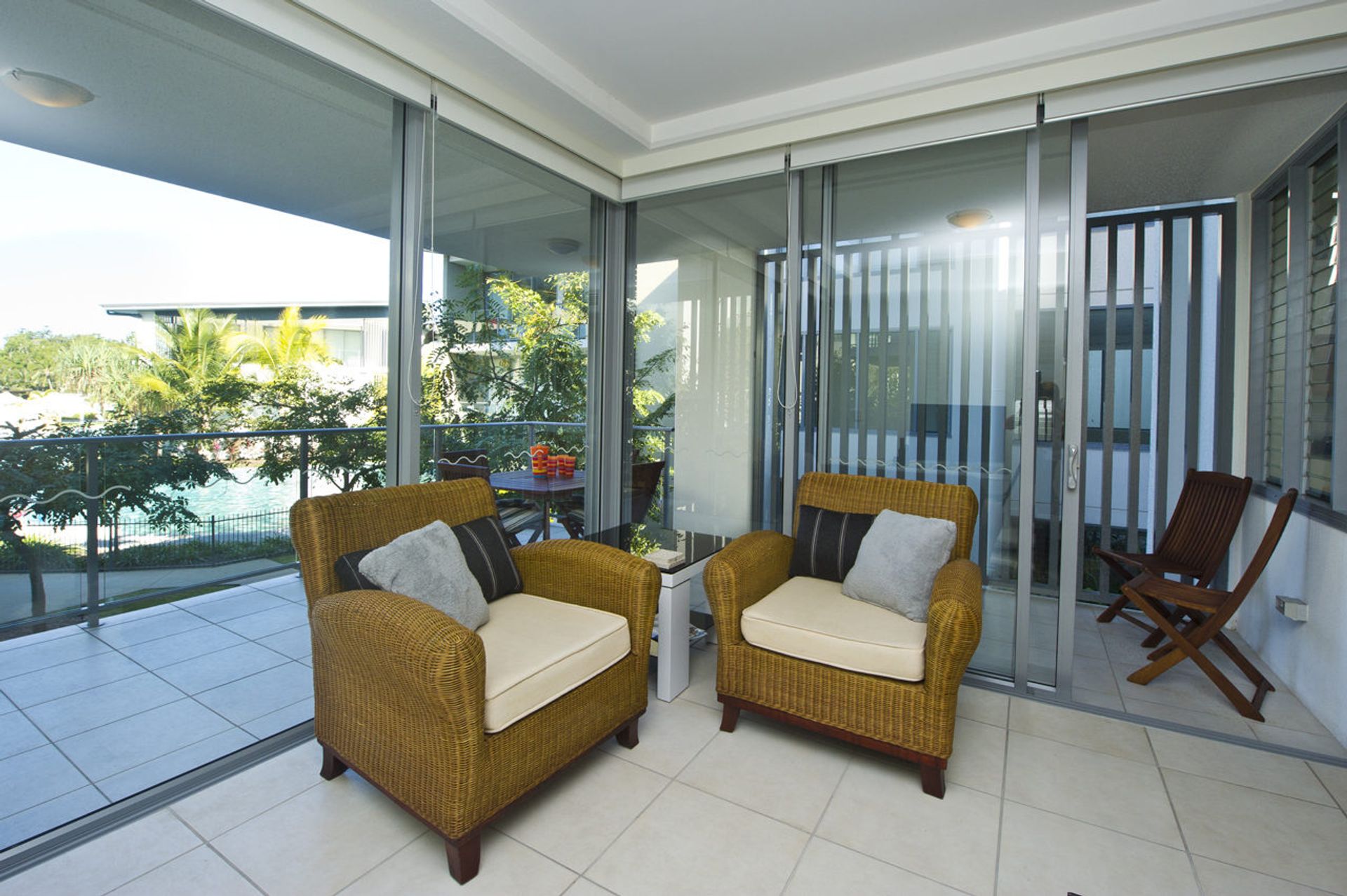 This apartment has quality furnishings throughout including flat screen TV's, leather lounges, relaxing cane tub chairs plus indoor and outdoor dining settings. It is self contained with a well equipped kitchen and laundry facilities.