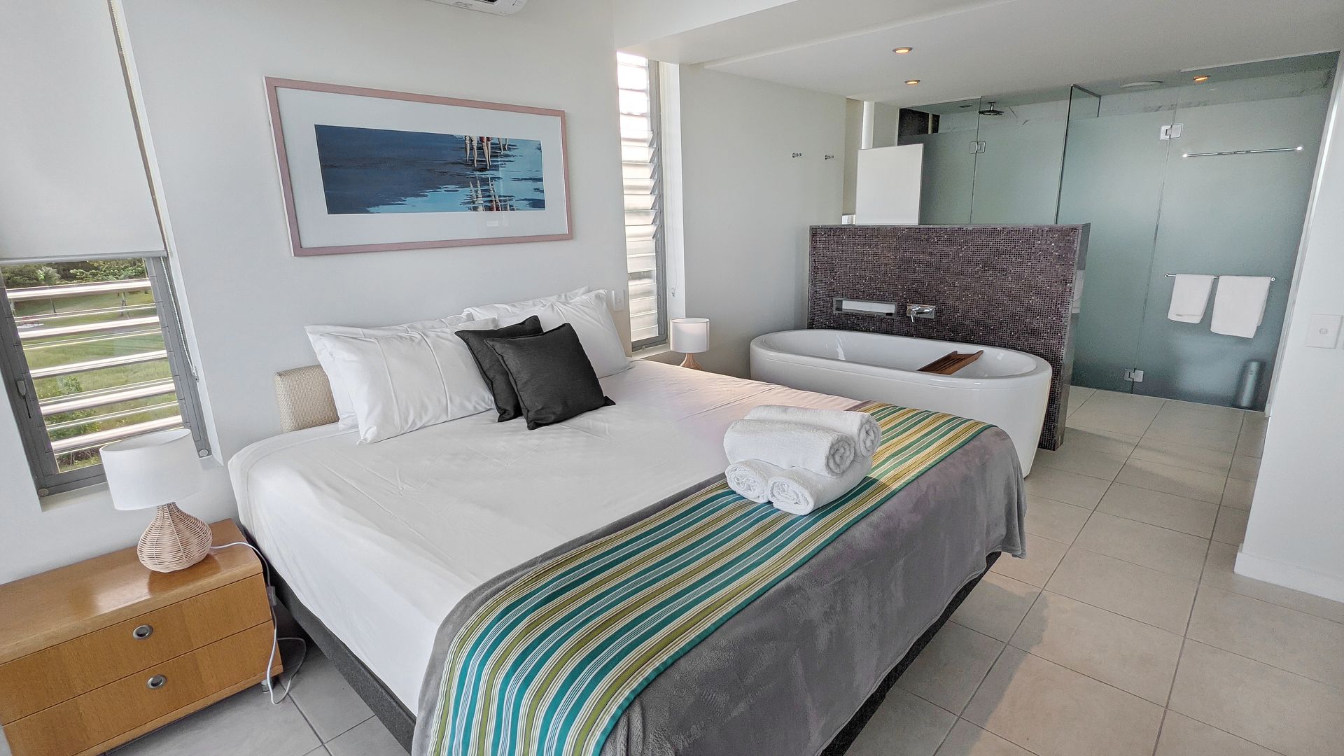 Blue Bayou is a penthouse-level 3 bedroom luxury apartment (no lift access) in the Blue on Blue resort with uninterrupted views across the marina to the mainland and the lights of Townsville. Views also extend to the side across Magnetic Islands rolling green hills, as the apartment is perfectly located at the end of the complex with added privacy, peace and quiet away from pool noise.