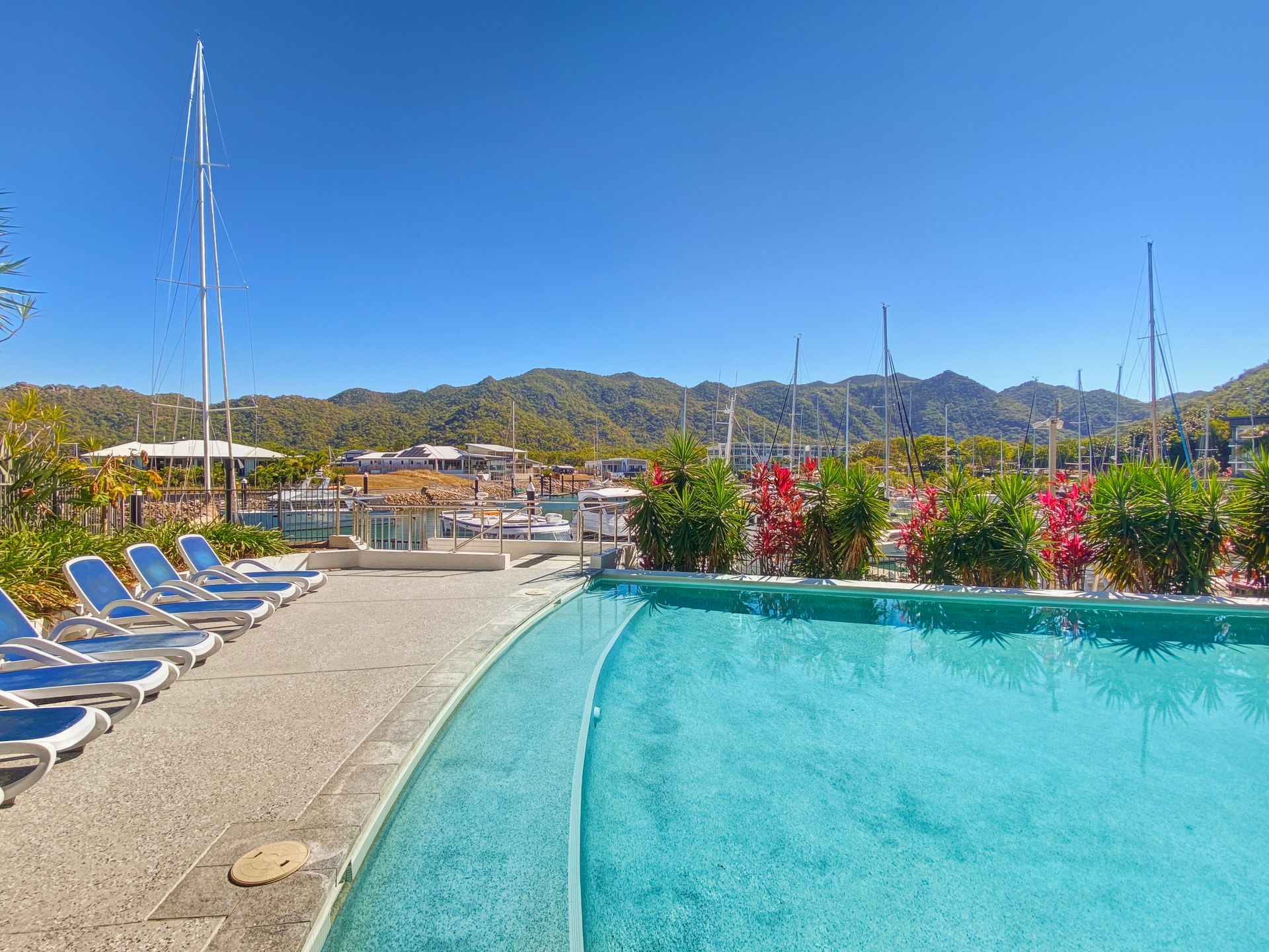 A perfect hotel style studio for a couple with full ensuite, flat screen TV and bar fridge. The water and marina views are stunning and the balcony is completed with outdoor seating. Sitting high above Magnetic Island marina, close to endota spa and within the beautiful Blue on Blue resort with a magnificent 100 metre lagoon pool this property is close to supermarkets, cafes, restaurants, public transport and Nelly Bays other conveniences. This studio features a king bed or 2 singles - its your choice!