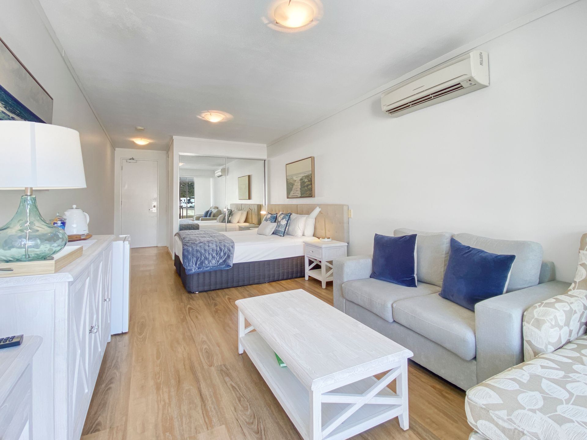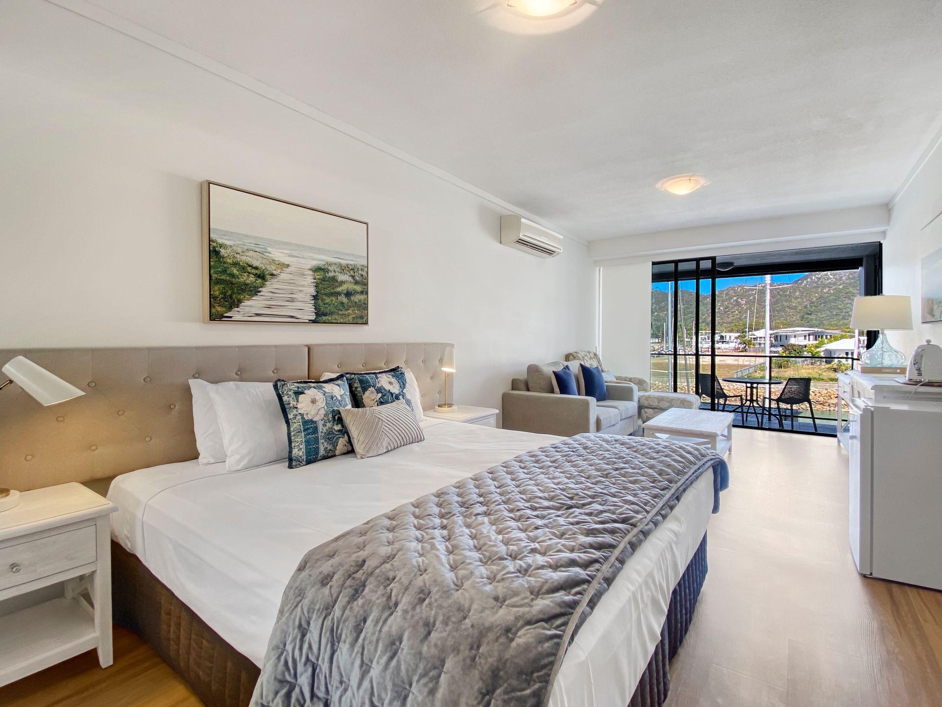 This marina front hotel studio room is stylish and comfortable. Suitable for 2 guests and part of the Blue on Blue resort you have the convenience of 2 lovely onsite pools.