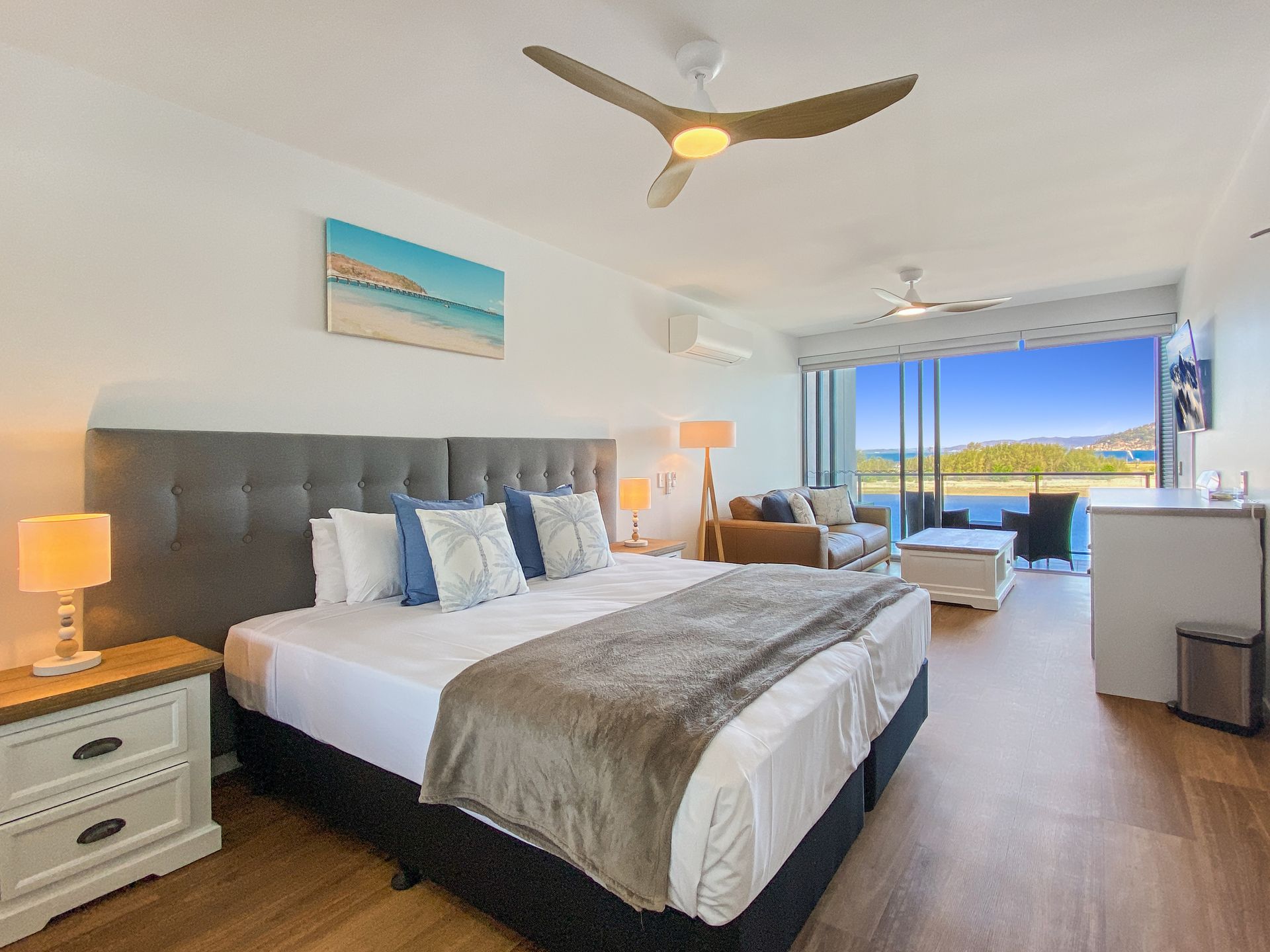 This marina front hotel studio room is stylish and comfortable. Suitable for 2 guests and part of the Blue on Blue resort you have the convenience of 2 lovely onsite pools.