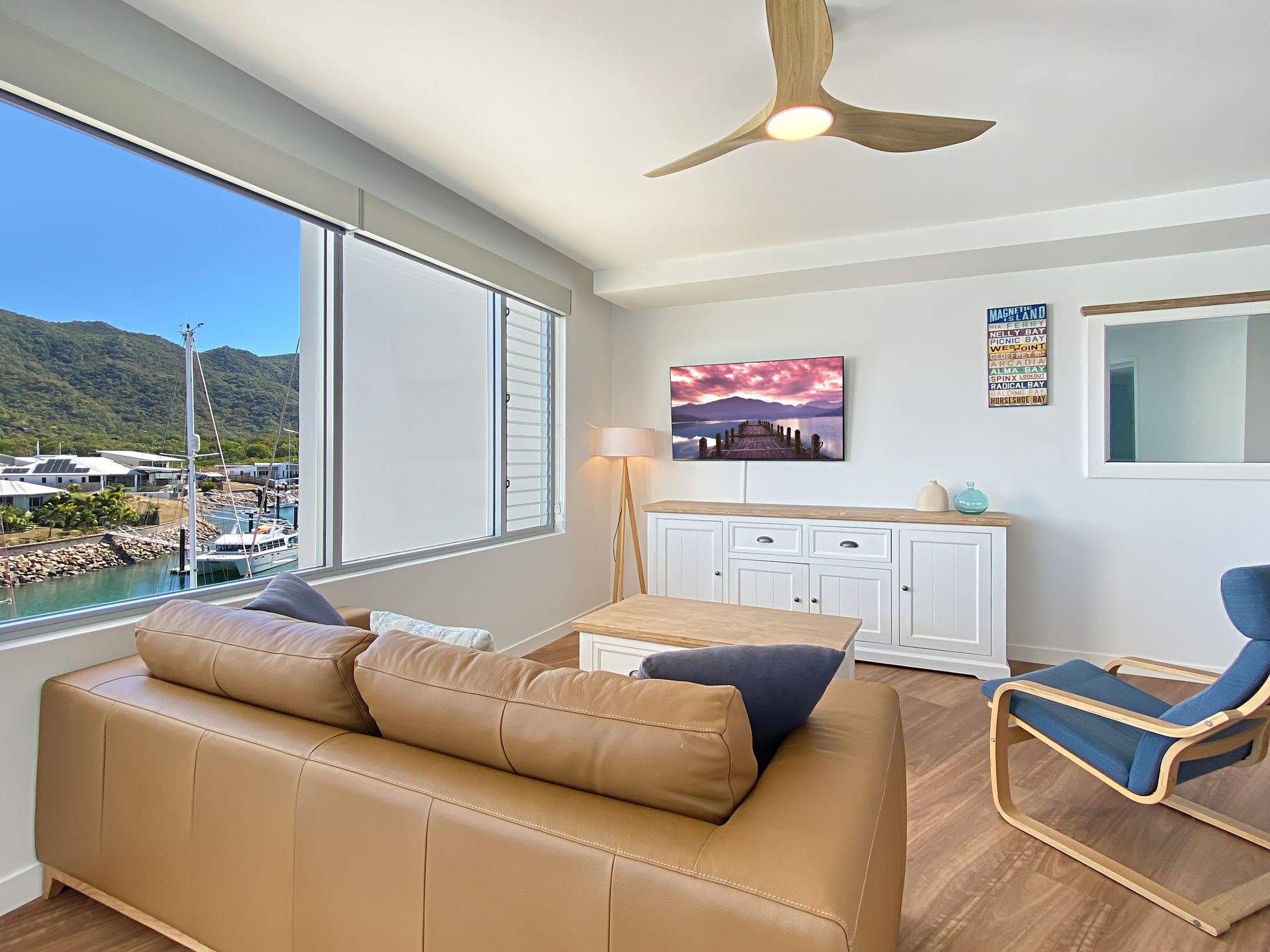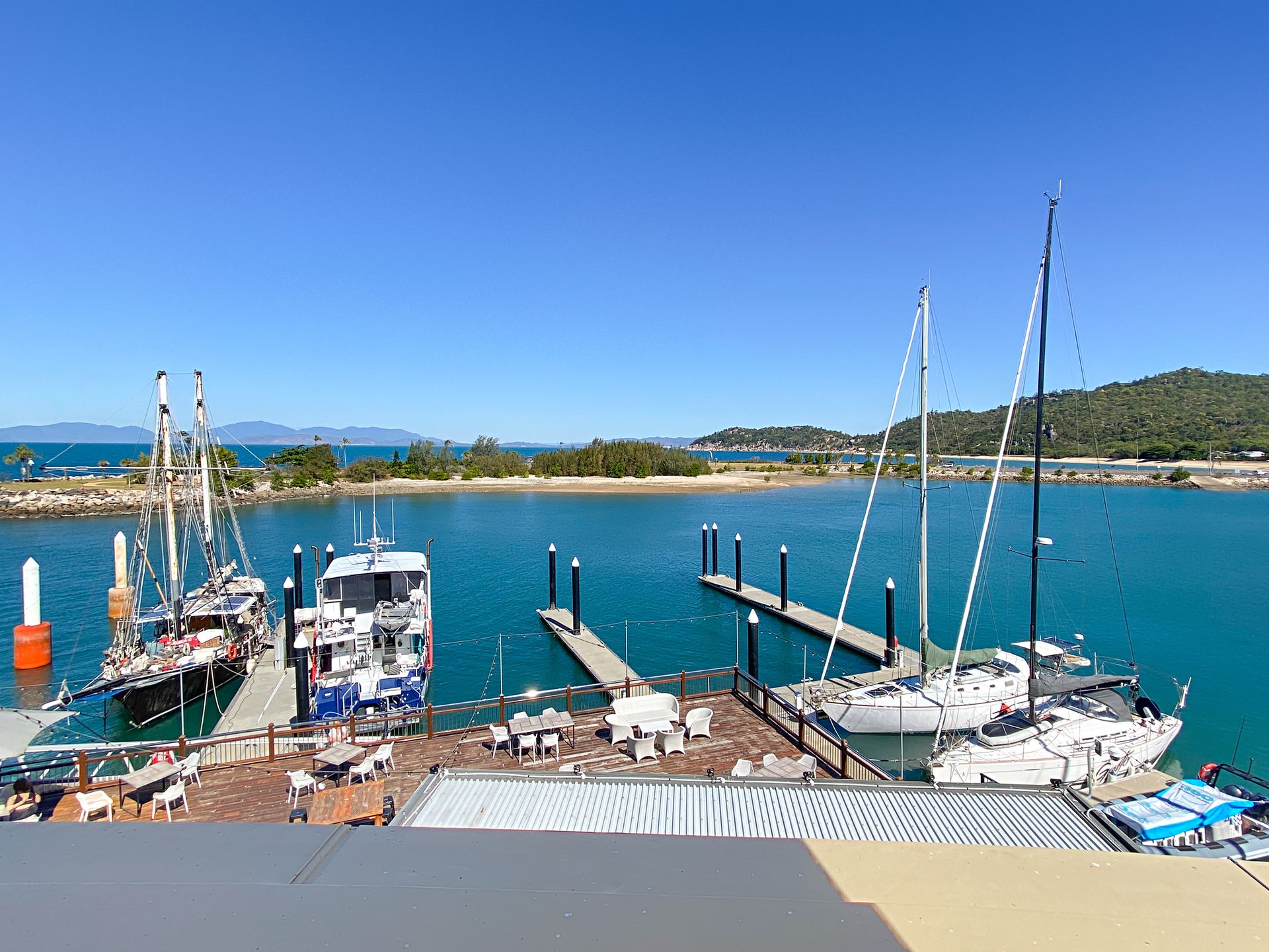 This marina front extra large private studio apartment is perfect for a couple with a full ensuite and kitchenette facilities (no oven), and separate living and dining areas. Sitting high above the Magnetic Island Marina, the water views are stunning.