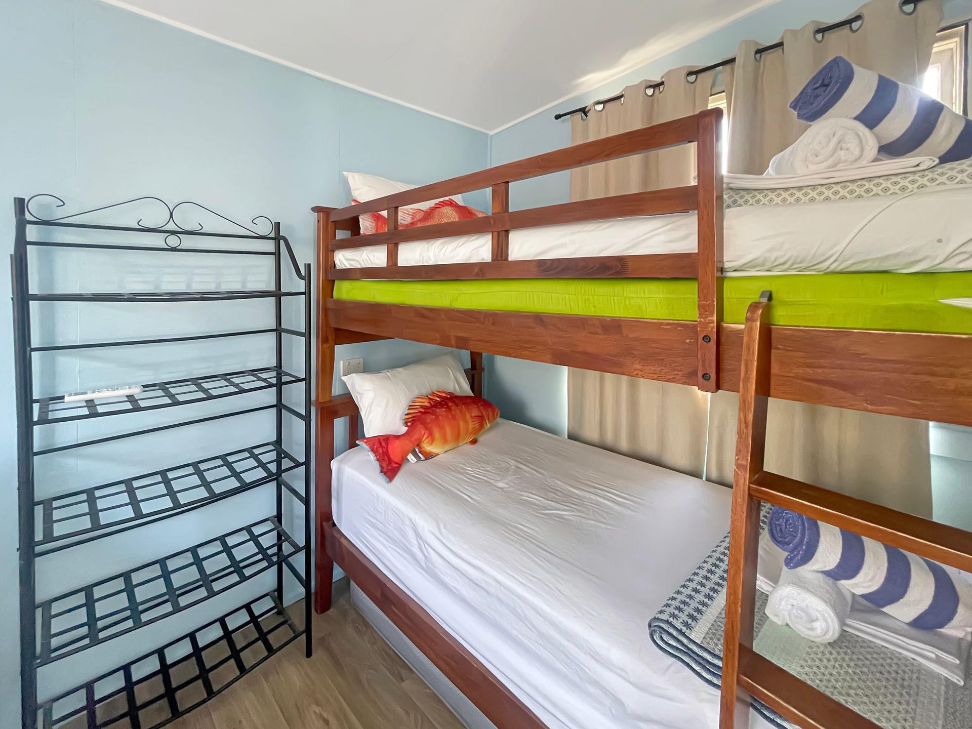 Bedroom 3: 1 x Queen Bed, 1 x Set of Single Bunk Beds - Upstairs