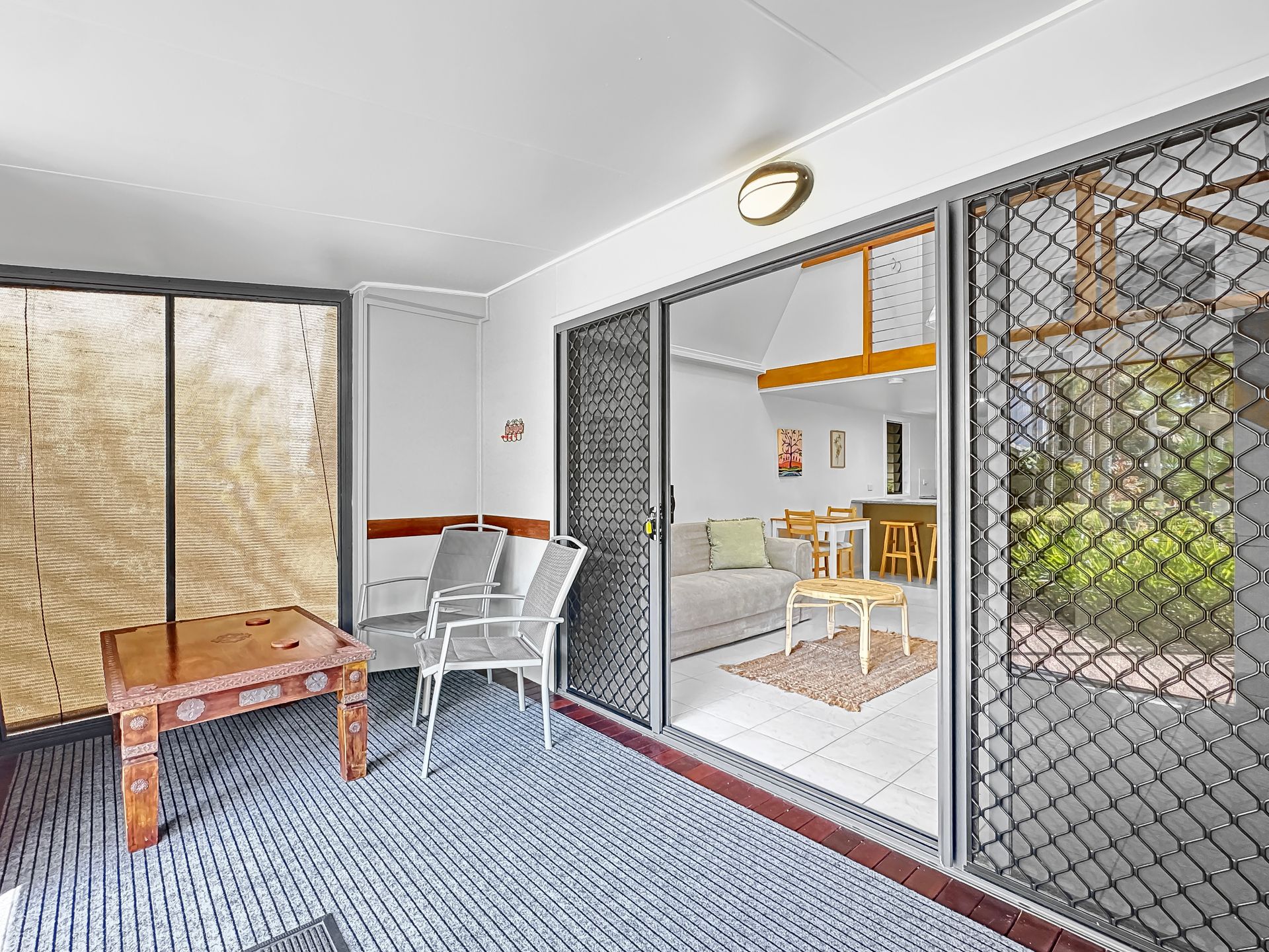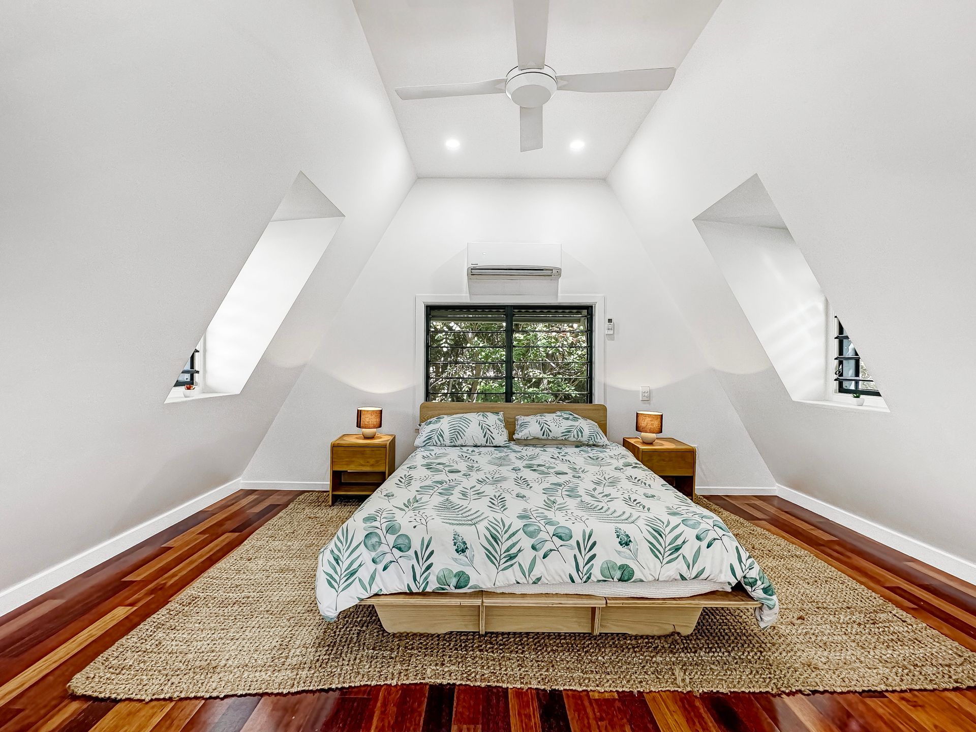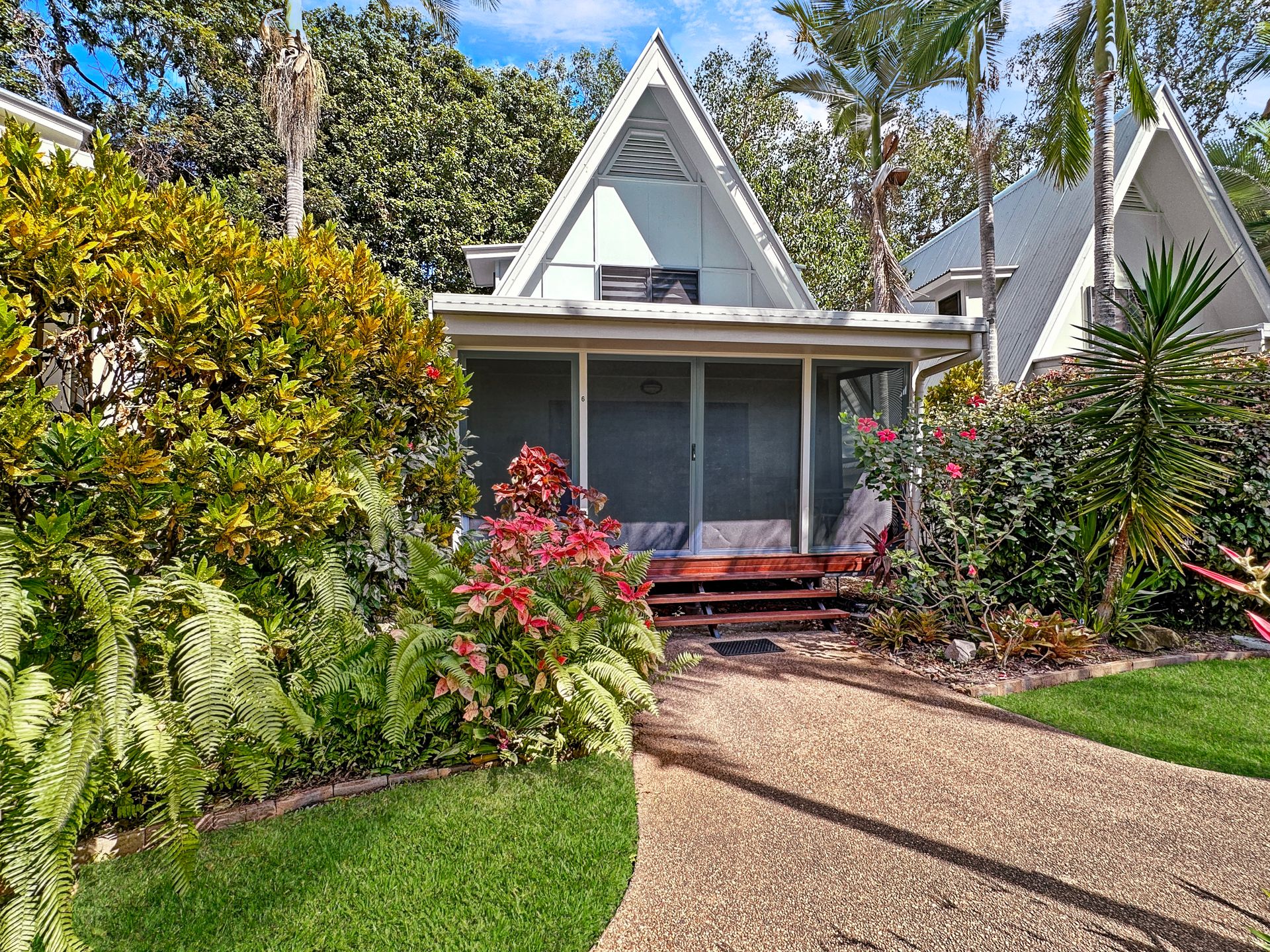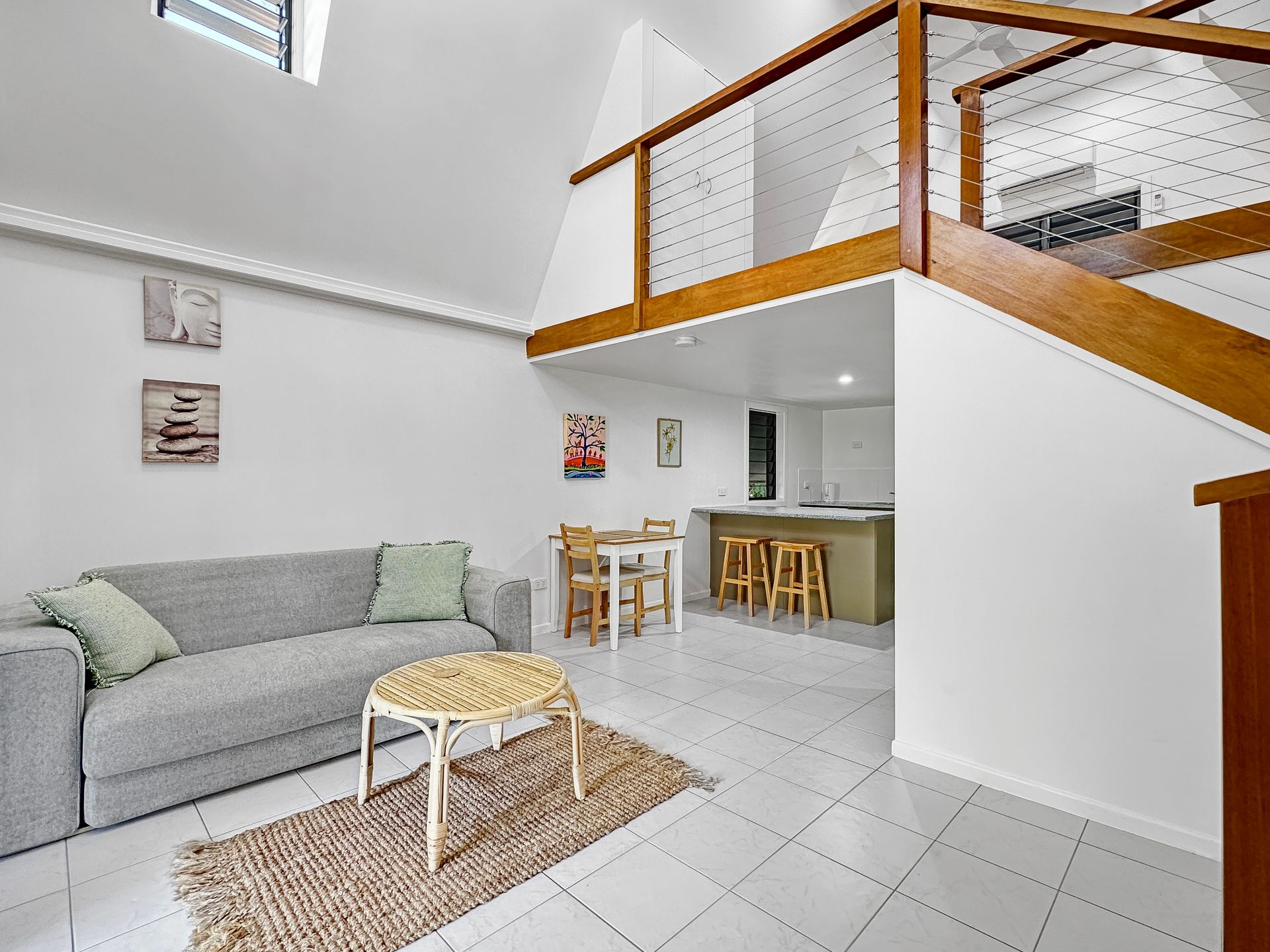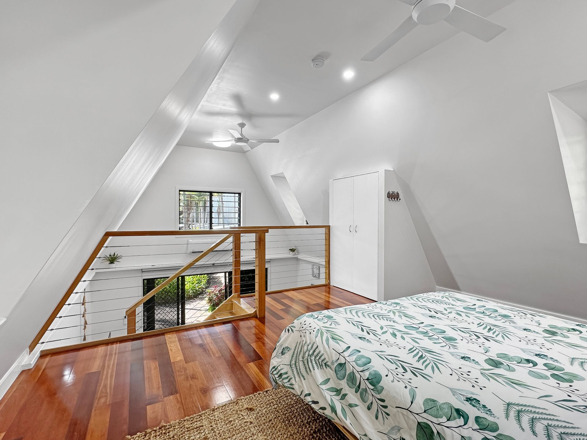 Inside, the chalet boasts a mezzanine queen bedroom with an air conditioner and ceiling fan ensuring your comfort in any season. The fully equipped kitchen is ideal for easy self-catering, while the cozy lounge invites relaxation with a Smart TV and comfortable furnishings. Outside, the property offers a tranquil deck with relaxing garden views—perfect for enjoying a morning coffee or evening drink. Guests also have access to a sparkling shared pool and shared BBQ facilities, creating the perfect setting to unwind and soak up the island's relaxed atmosphere. With thoughtful amenities and inviting spaces, Canopy Chalet 6 provides a memorable Magnetic Island getaway.
