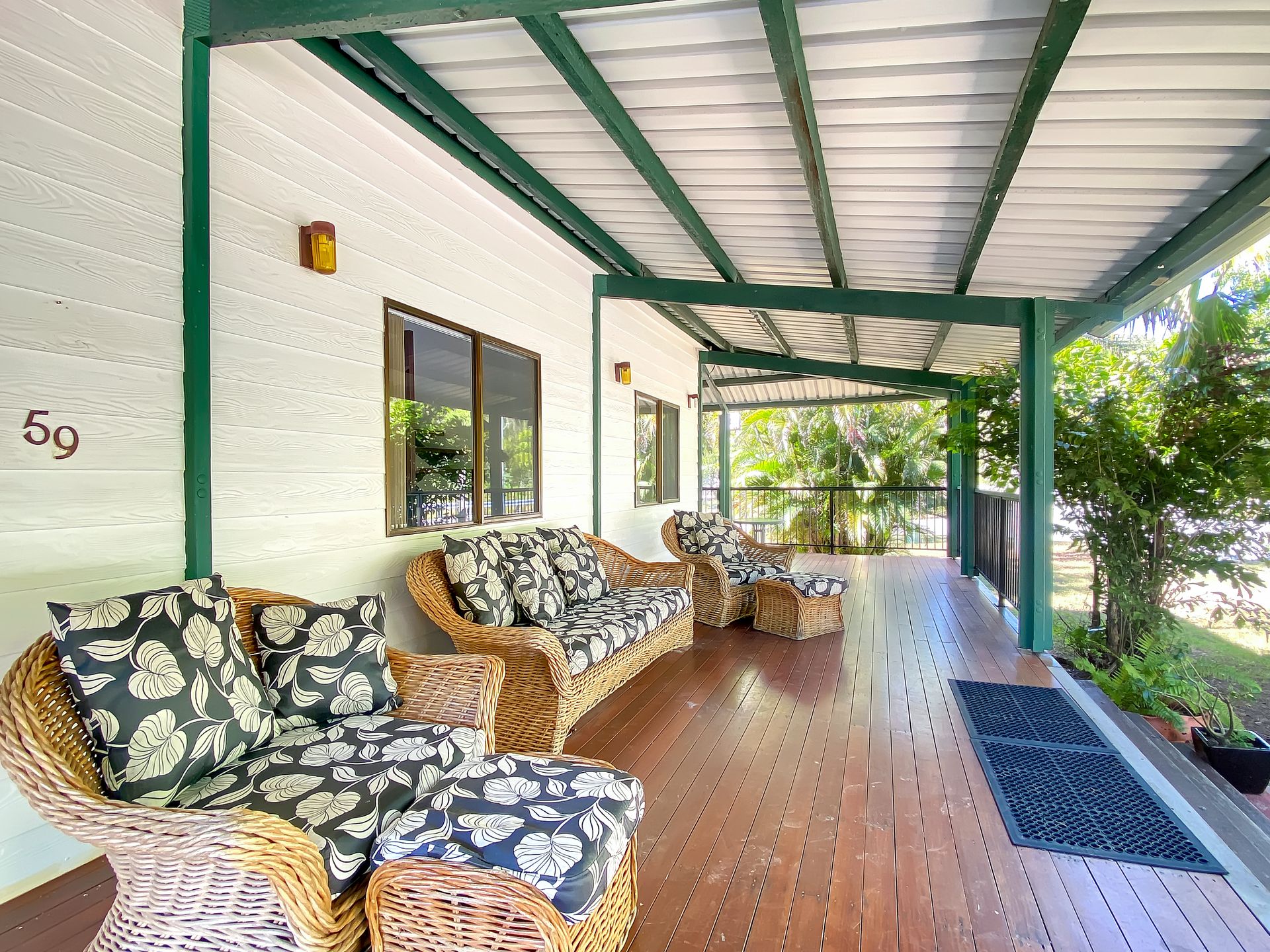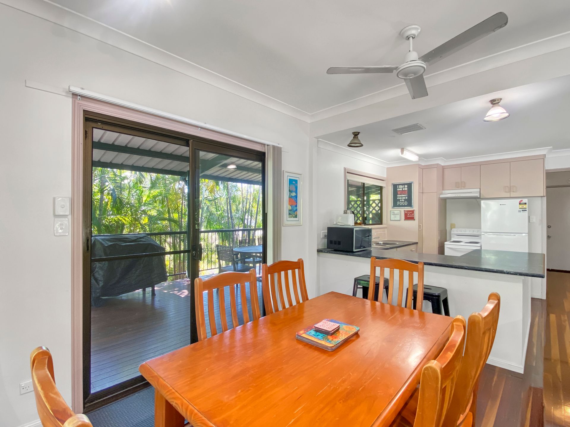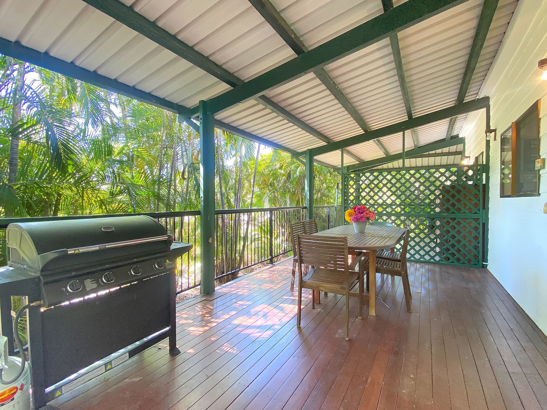 Relax on the front deck in the outdoor lounge and take in the sights and sounds of the local wildlife. The rear deck features a large, family size gas BBQ, bar fridge and outdoor dining setting, all in a private and tropical setting.