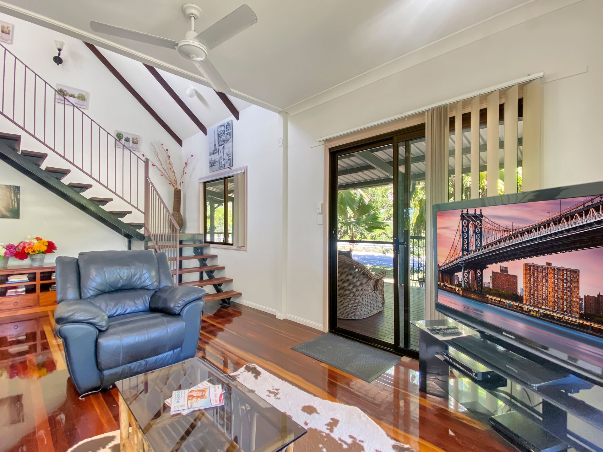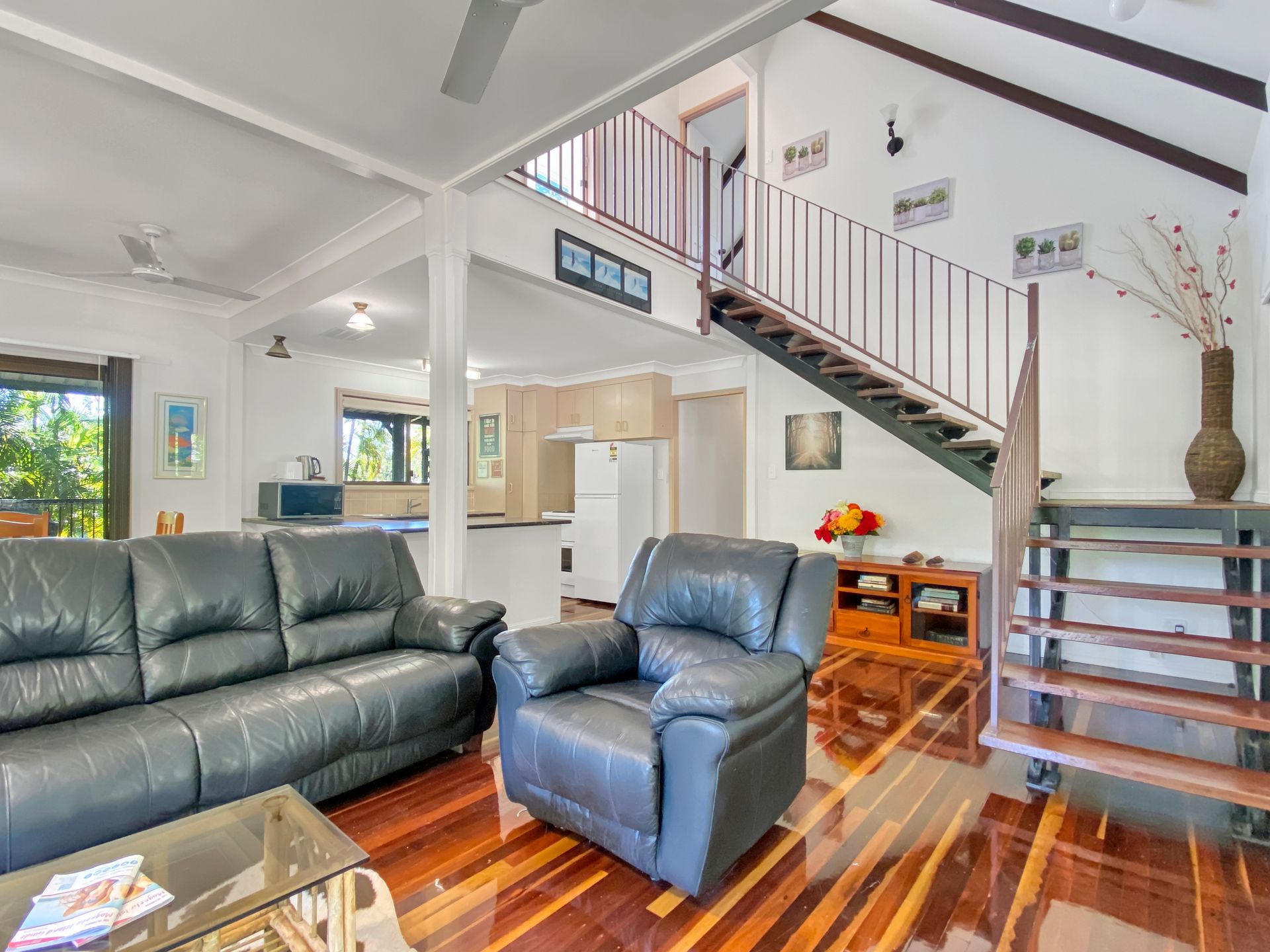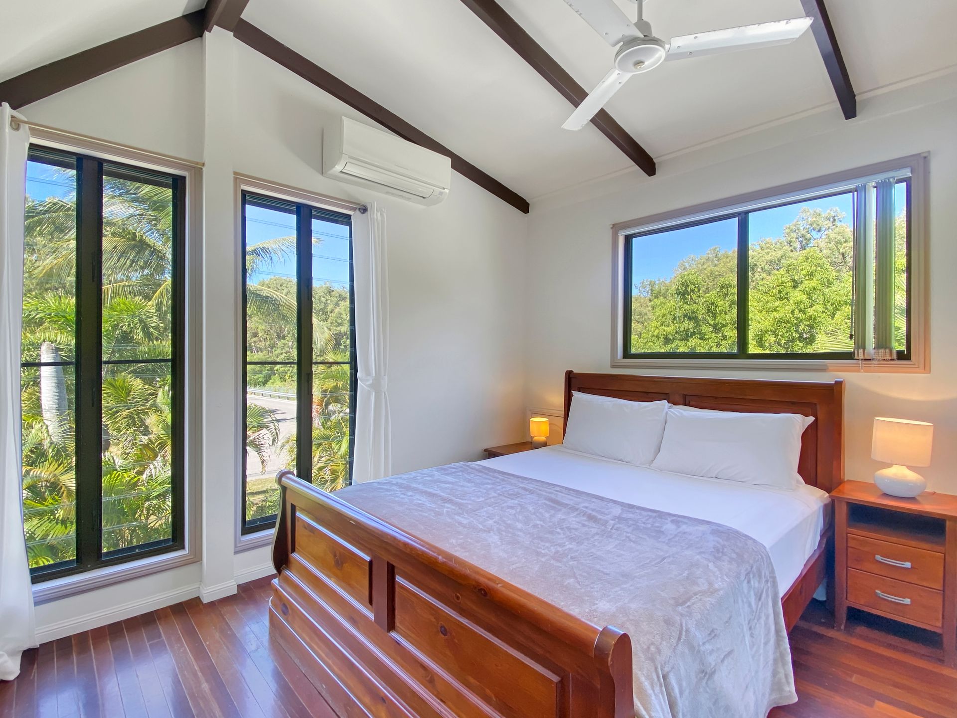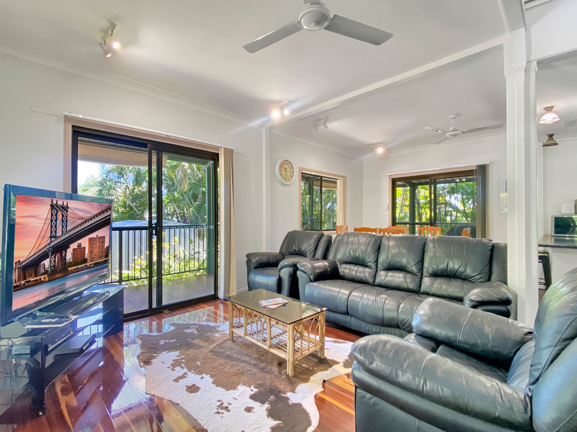 Relax on the front deck in the outdoor lounge and take in the sights and sounds of the local wildlife. The rear deck features a large, family size gas BBQ, bar fridge and outdoor dining setting, all in a private and tropical setting.