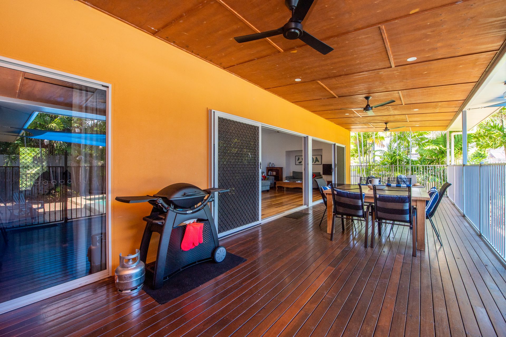 The whole property is fully screened with ceiling fans to make the most of the cool breeze while also being fully air-conditioned for the warmer summer days.