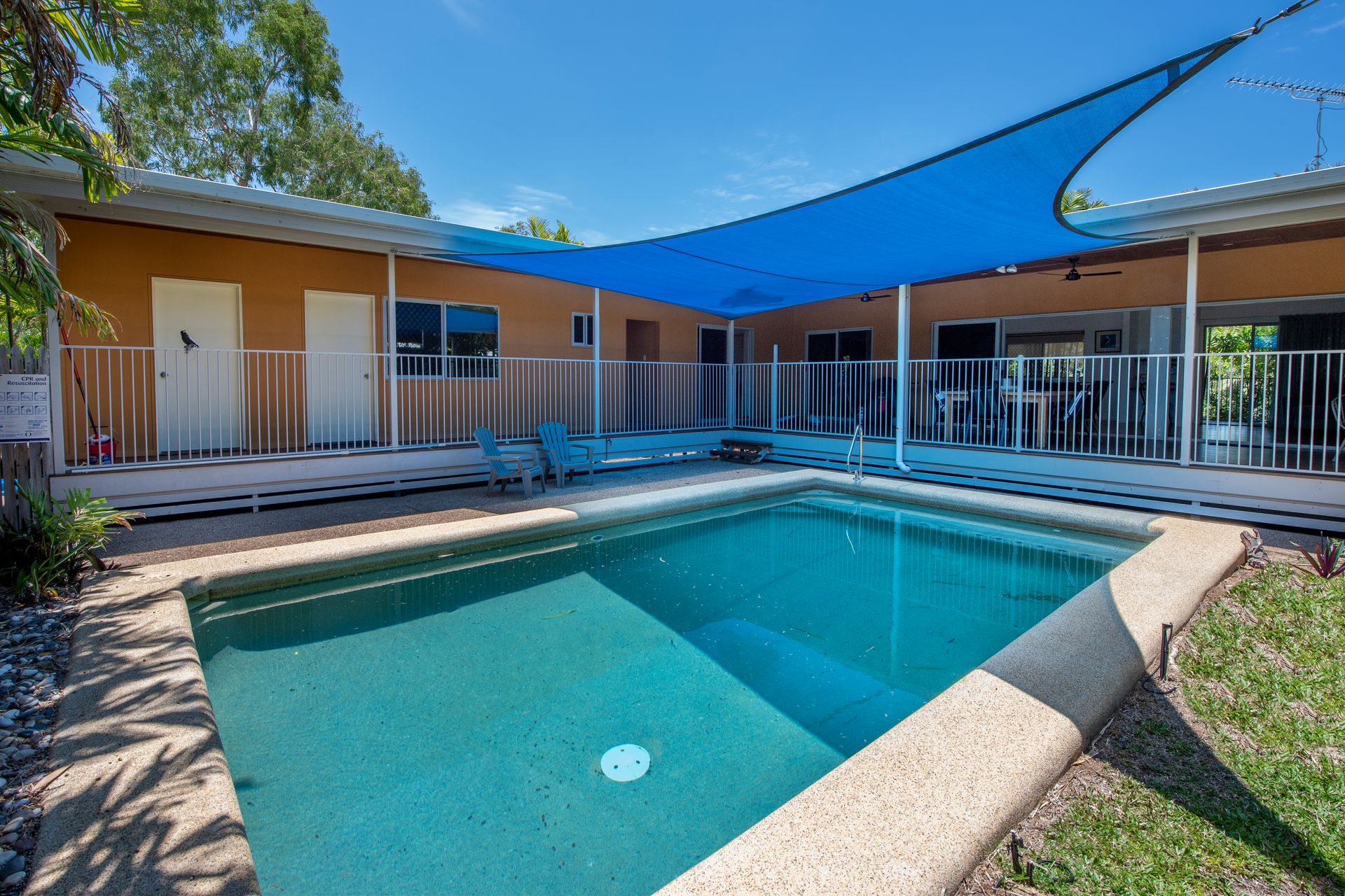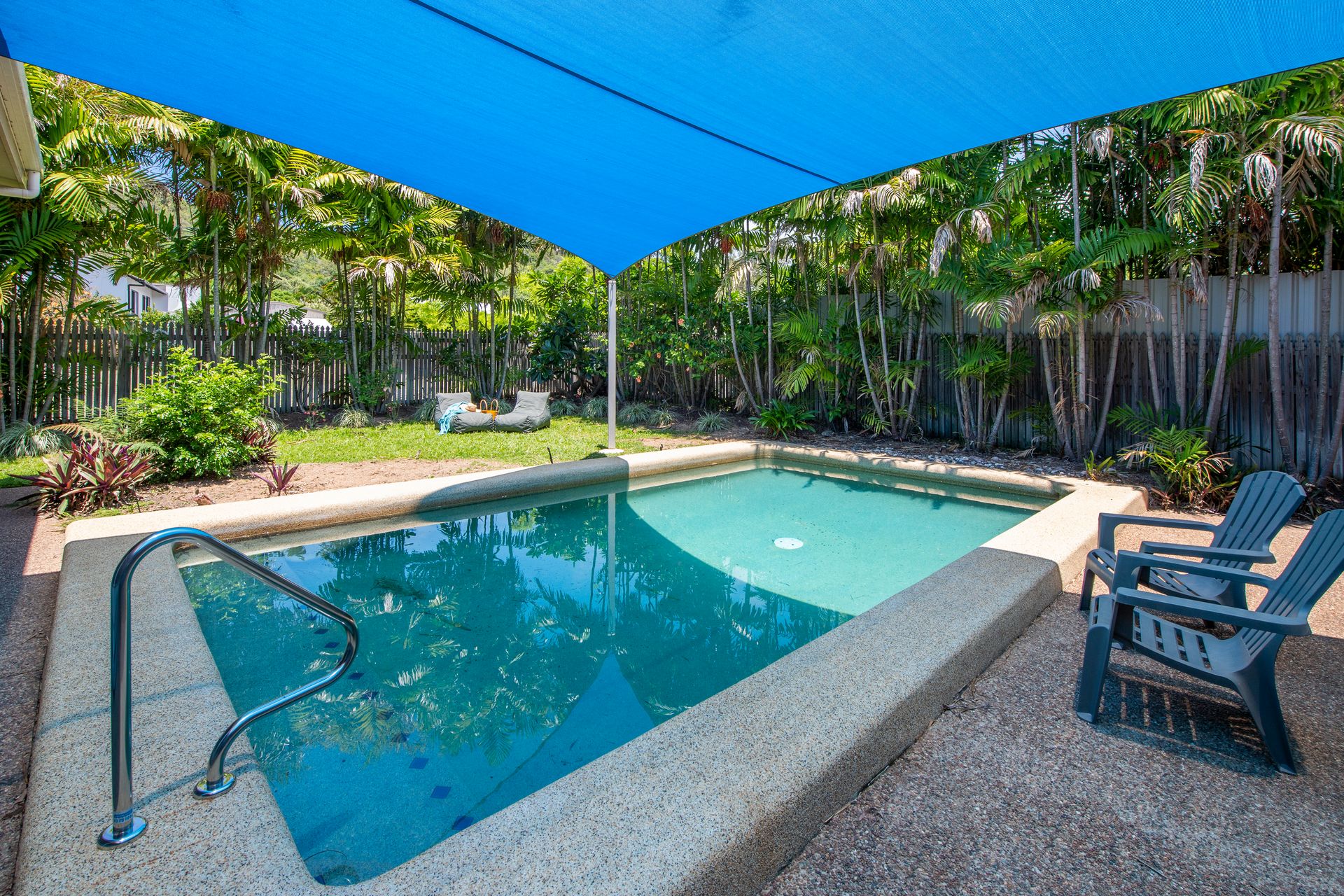 A large pool is the perfect centrepiece of Butterfly Bungalow with a shade sail allowing comfortable swimming all summer long.
