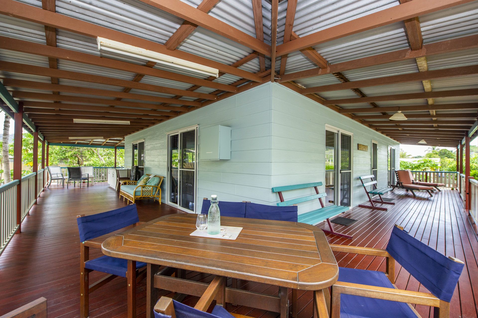 'Ludbrookes' is a classic, family, holiday home located in a quiet residential street of Nelly Bay. Surrounded by tropical palms and fruit trees, this 3 bedroom home offers the perfect escape for busy families looking for some quite time.