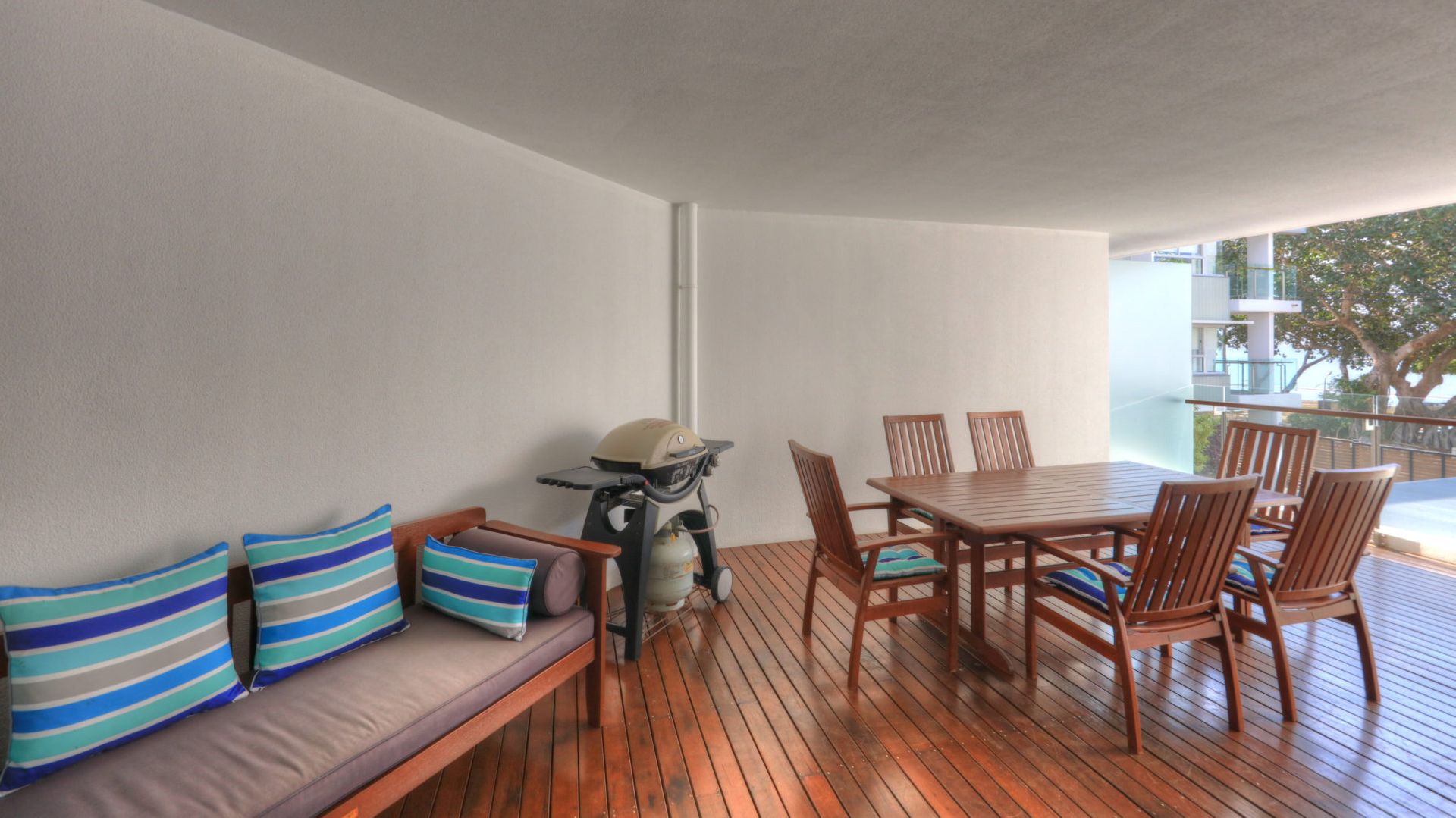 Apartment 11 is on the second level setback from the front with lovely views of the foreshore and water from the balcony. This apartment features 2 queen beds and 1 double bed. There is lift access.