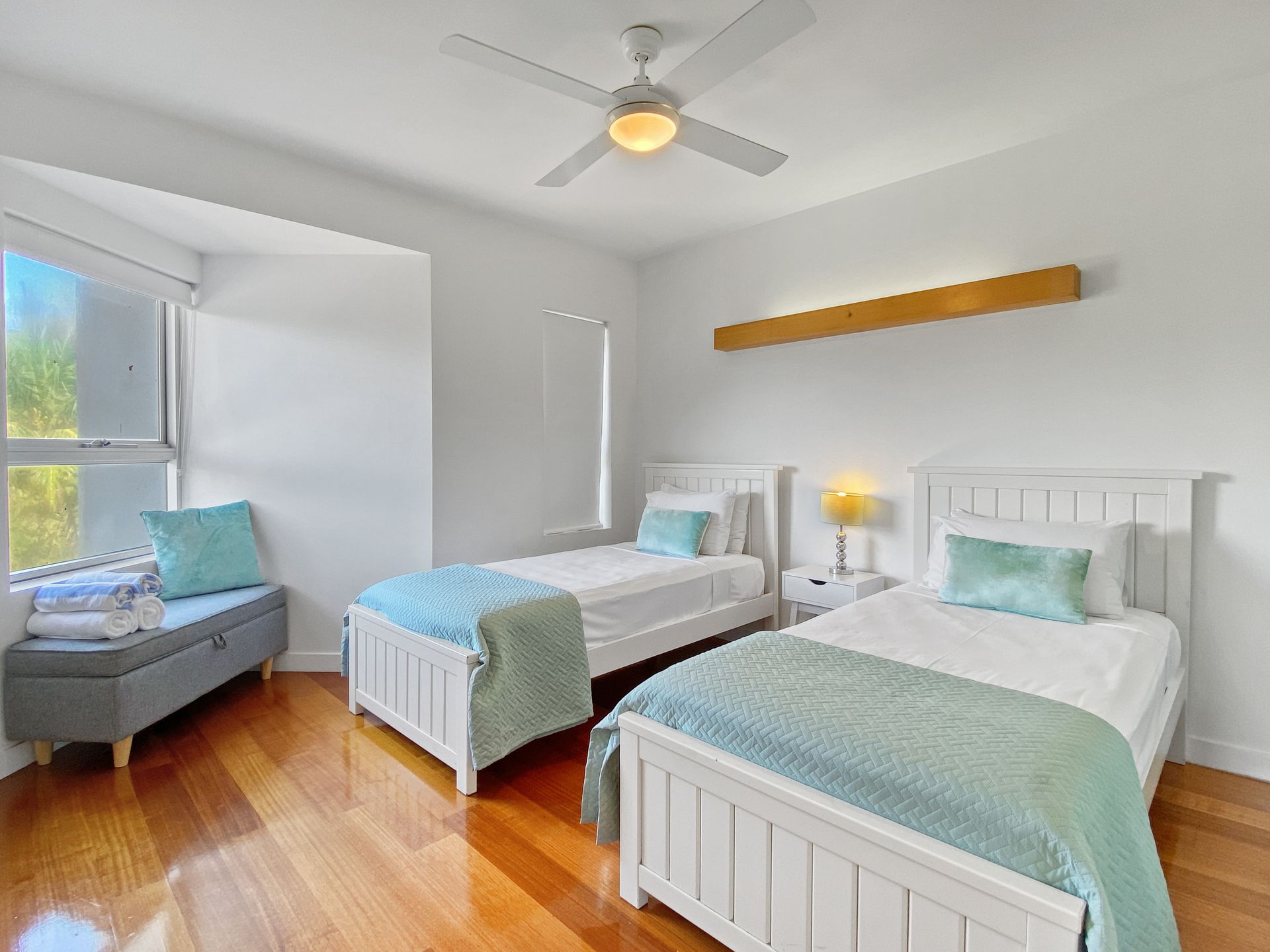 Apartment 12 is the premier apartment in the complex on the third level closest to the beach with fantastic views of the foreshore, water and mountains from the 10mt x 3mt front balcony. This apartment features 2 queen beds and 2 single beds. There is lift access.