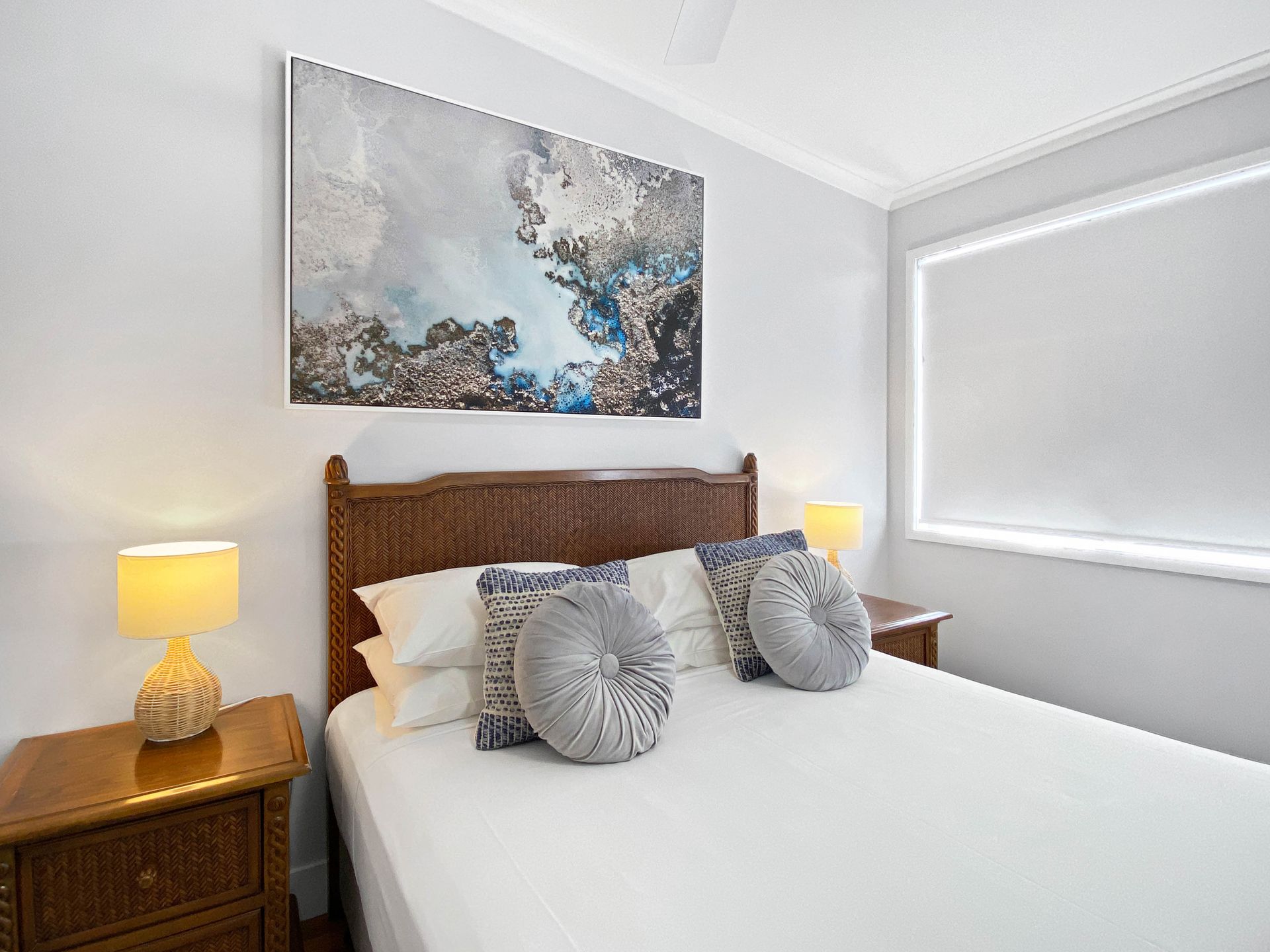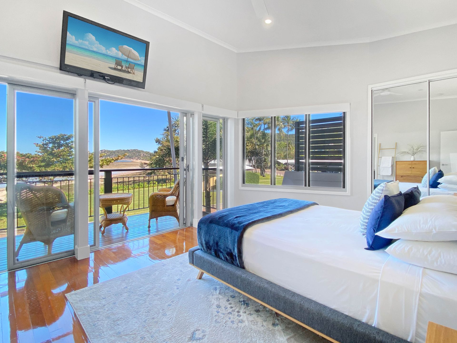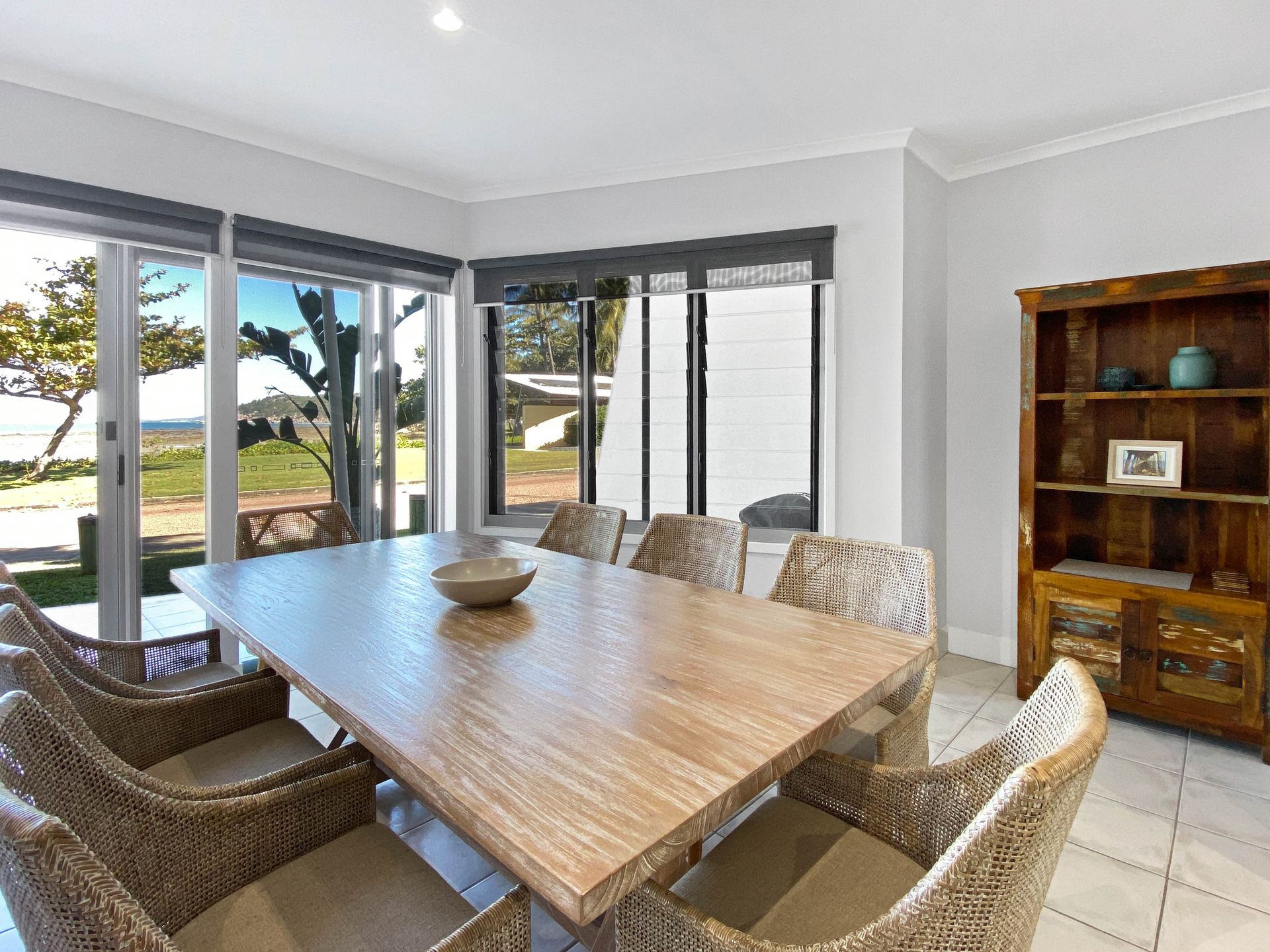 You'll be greeted with stunning ocean and beach views wherever you step in this coastal retreat. The perfect island getaway with an easy and relaxed vibe due to its beautiful coastal design. It incorporates natural seaside elements through colour and texture with crisp white rooms, rattan furniture, light weathered wood dining table, and splashes of sea blue from the bed coverings. Guests will feel at ease relaxing on the comfy sofas reading or watching a movie, enjoying some outdoor dining on the large patio area, or sipping a coffee on the main bedroom's balcony. This property features lots of great amenities for a fantastic beach vacation, including: