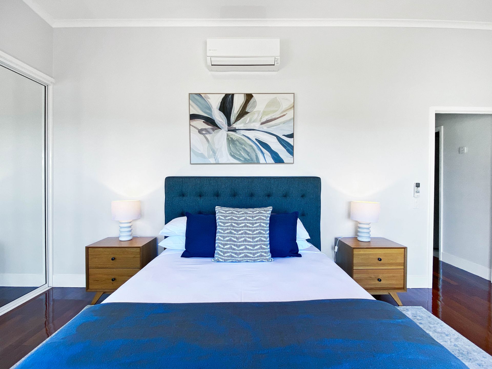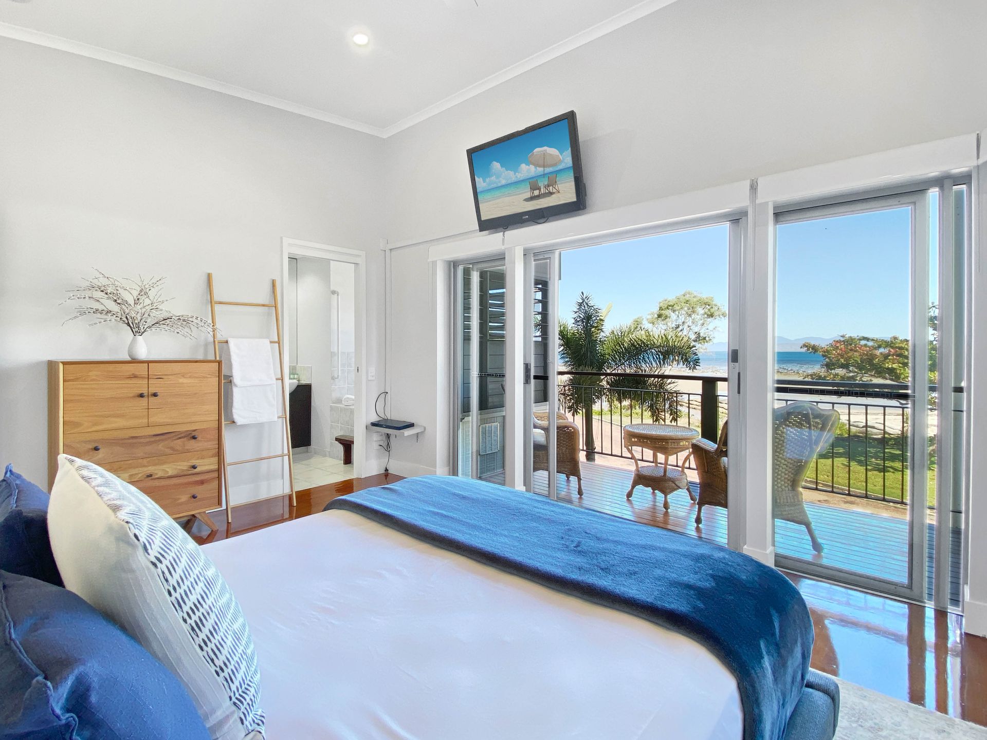 Bedroom 1: 1 Queen bed, ensuite, balcony access, air-conditioning, and ceiling fan