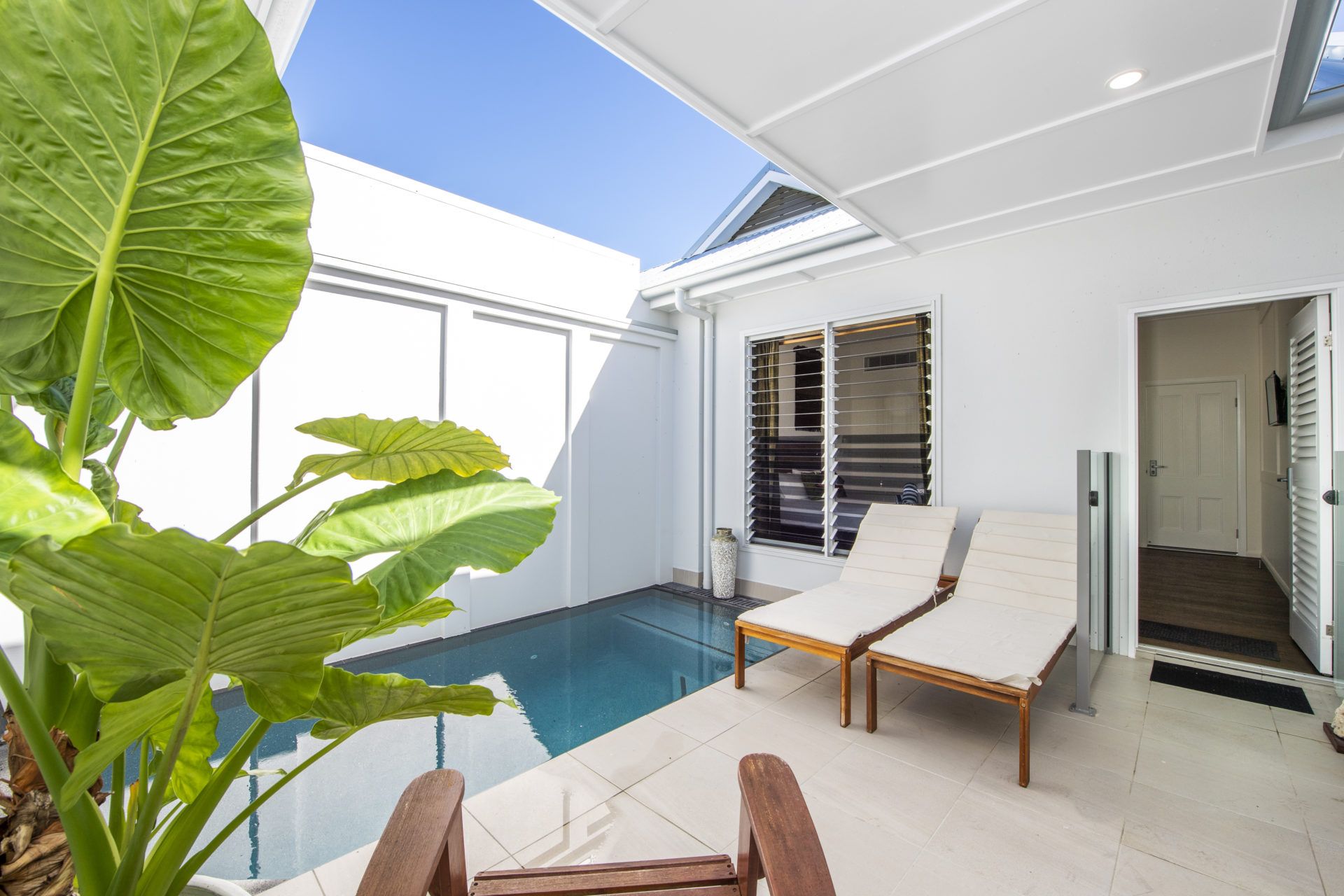 Guests enjoy private courtyards with large temperature controlled plunge pools, king size bedroom suites, separate living pavilions, BBQs and views across the bay.