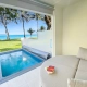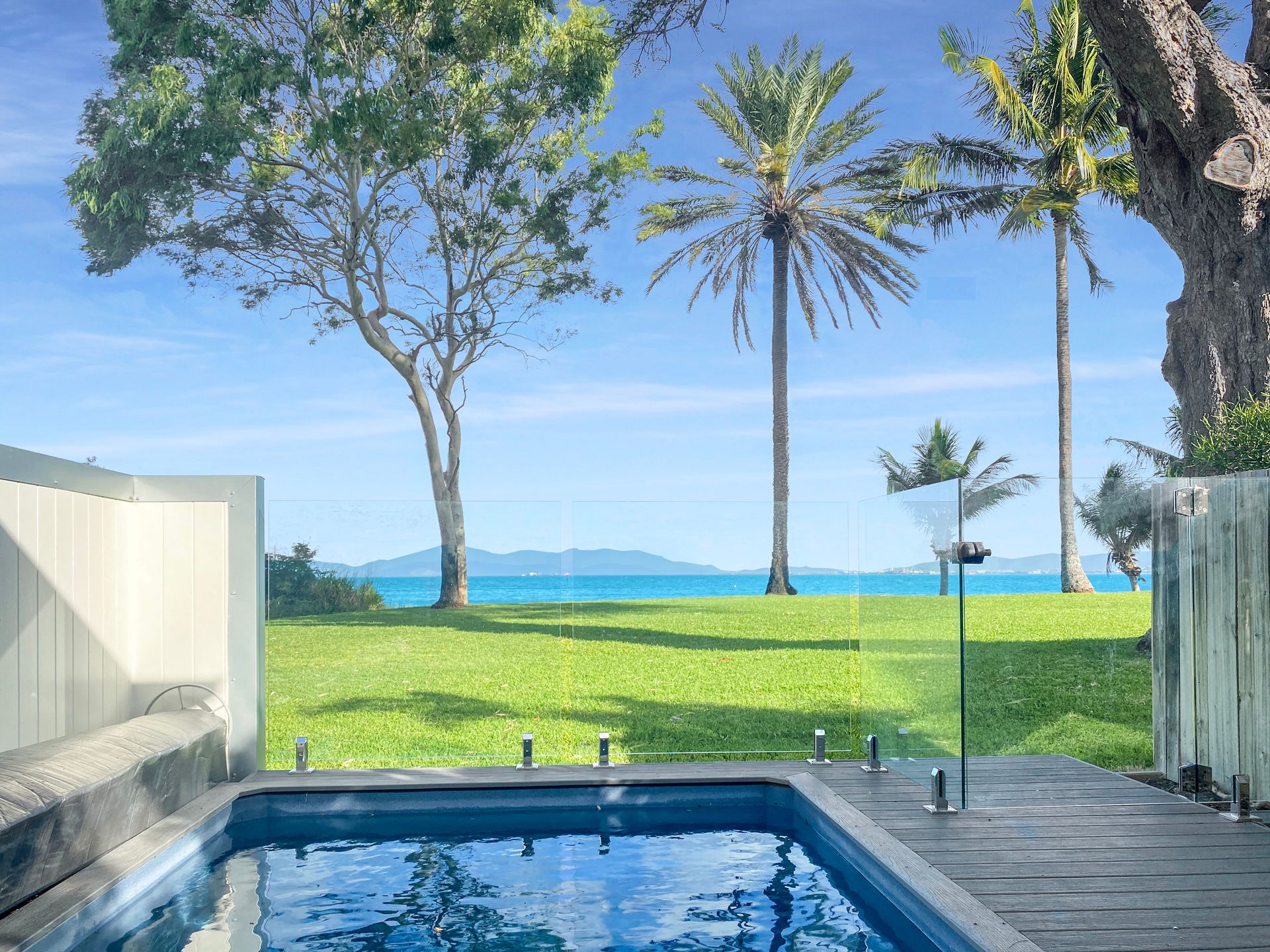 The king-sized bed will ensure you sleep soundly at night, and the solar heated pool looking towards the beach will keep you cool during the day.