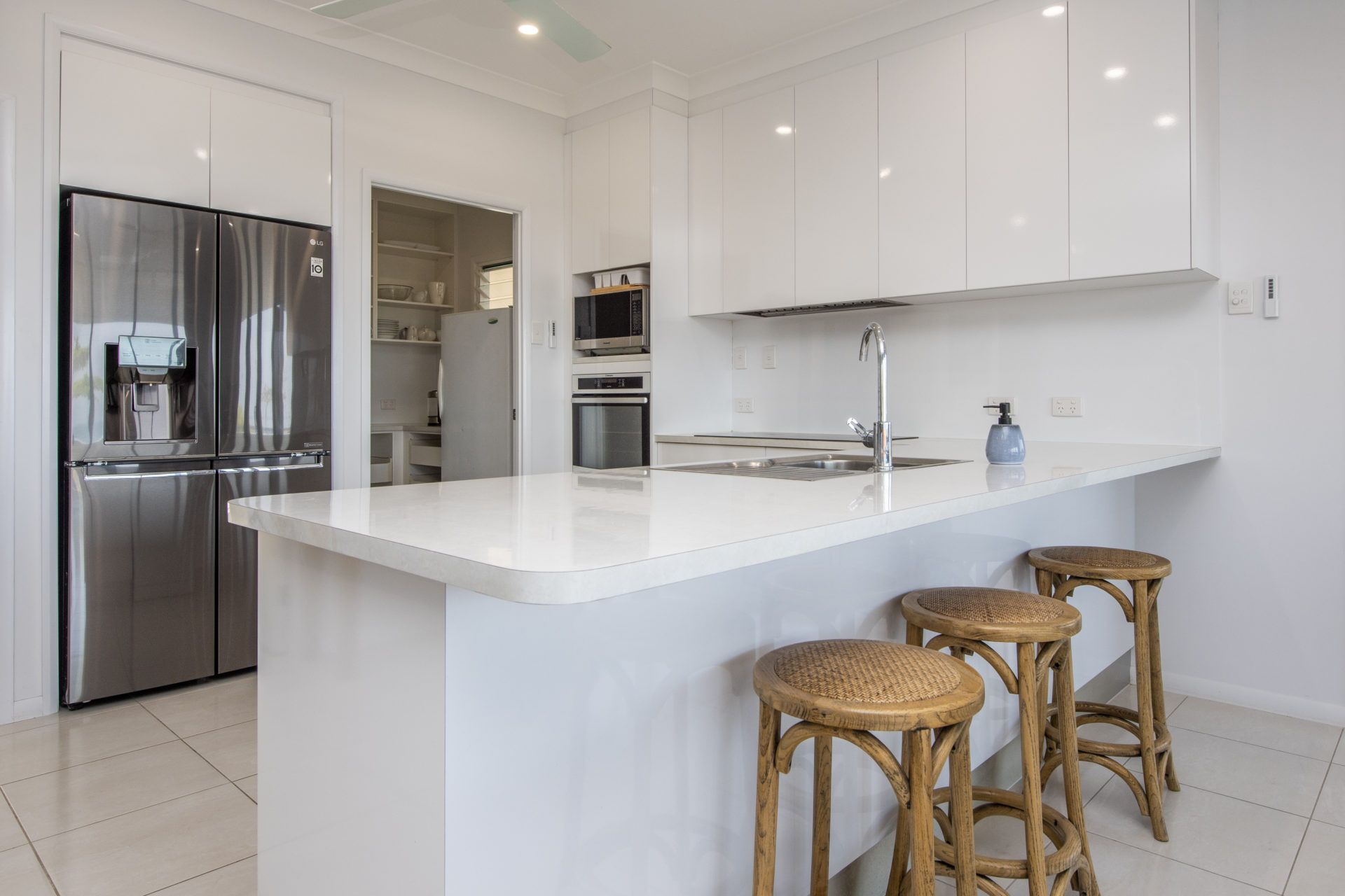The large open plan kitchen, dining and living area is complete with glass doors opening to the balcony, and allows the spectacular views outside to be enjoyed in air-conditioned comfort year-round. There is a separate lounge room with TV, allowing space for the whole family to relax and enjoy their time in this beautiful home.