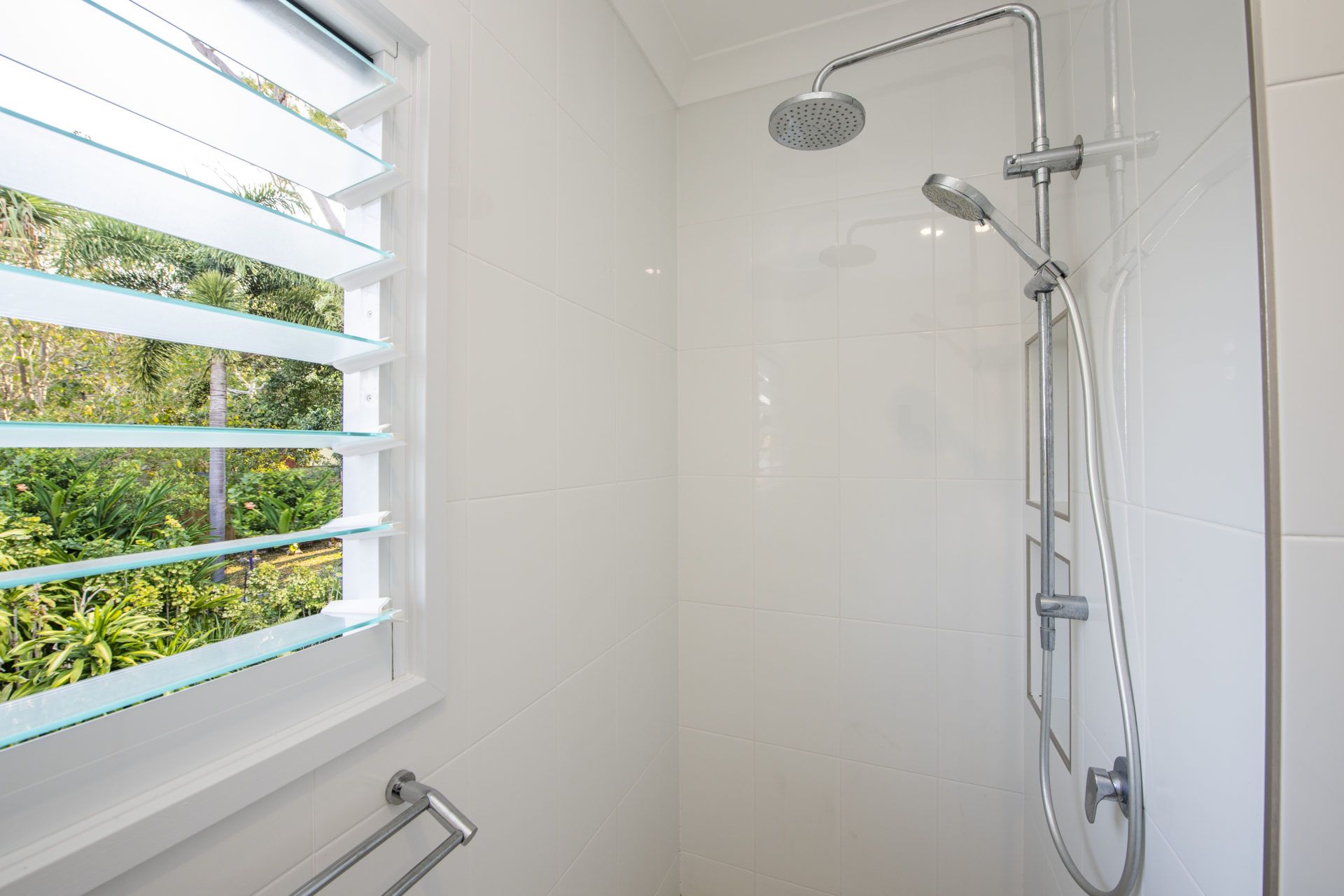 The master bedroom upstairs in the main house boasts ocean views that you can enjoy without leaving your queen size bed. The room is complimented by an ensuite and opens to a large private balcony. If you must work while you are on your tropical escape, the study area provides a comfortable and quite space to complete your tasks while still enjoying the ocean views.