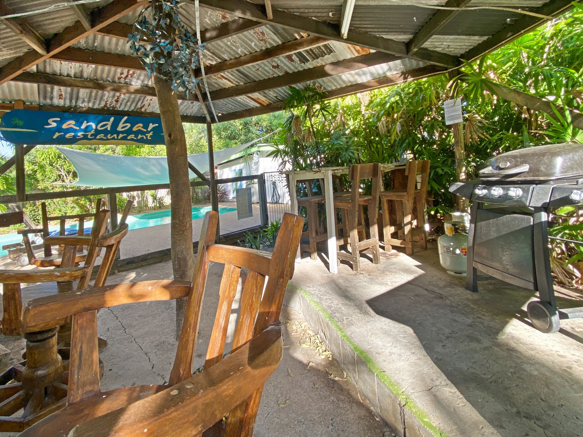 This budget unit features a communal BBQ area, a large gazebo with tables and seating and a swimming pool. There is also a communal laundry area.