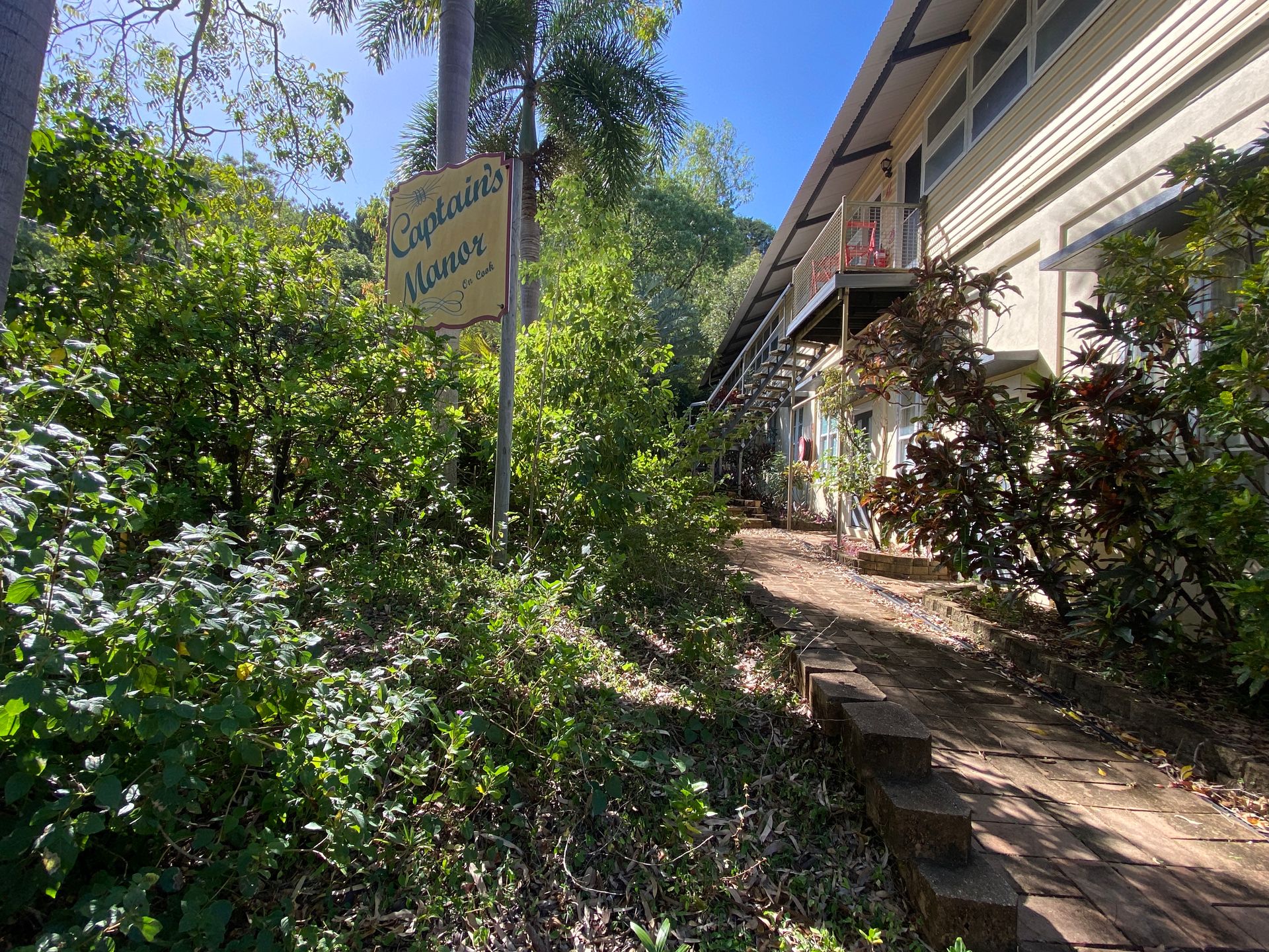 The Captain's Manor On Cook units are situated amongst tropical gardens in a quiet, no through street in Arcadia, only a few minute's walk to beautiful Alma Bay swimming beach.