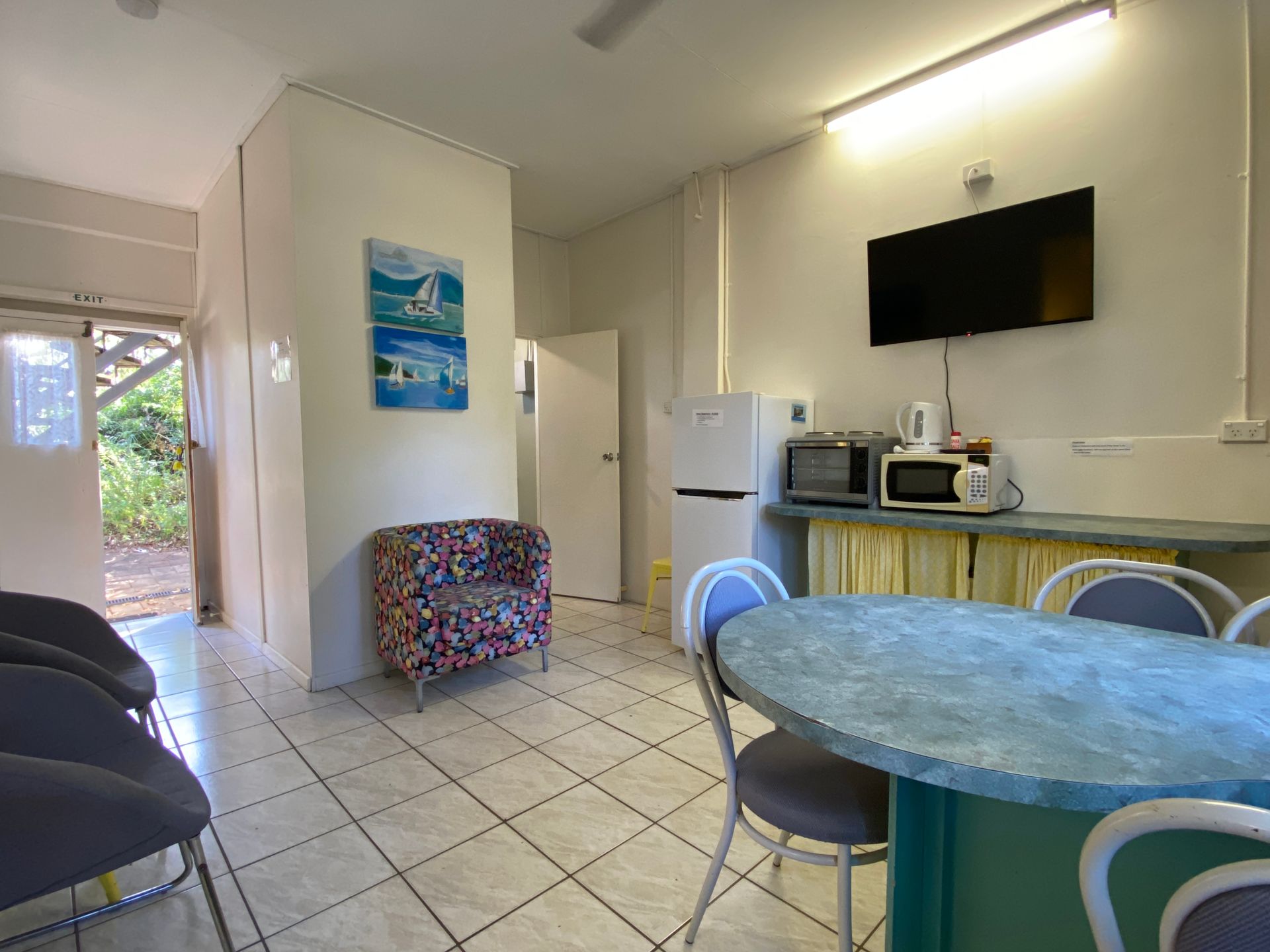 Unit 9 is situated downstairs and has been recently refurbished. It offers a compact open plan kitchen, dining and lounge area. The main bedroom has a queen bed and air-conditioning and a ceiling fan while the second bedroom has 2 single beds and a ceiling fan only.